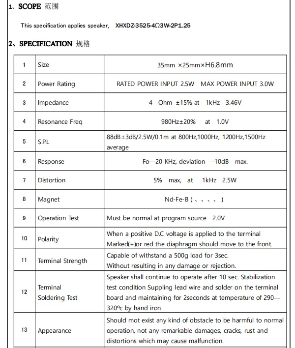 Model Number: 3525 2030 4 ohm 3w 8 ohm