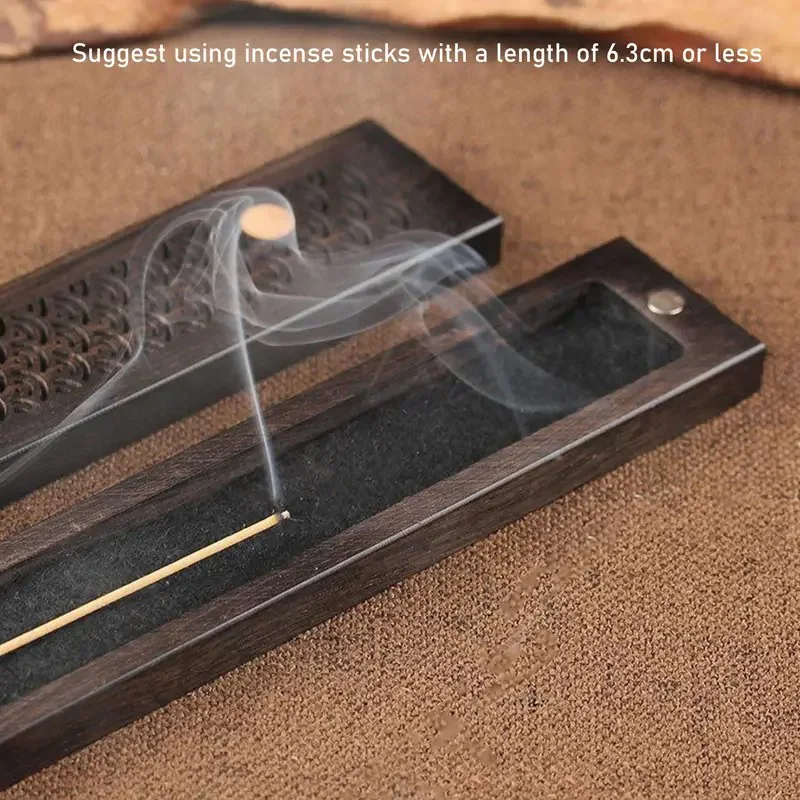 Design and Style:Hollowed Out Line:Featuring a hollowed out line design, this incense box adds a touch of elegance to your space.', Usage and Purpose:Portable Sleeping Incense Box:Designed as a portable sleeping incense box, it's perfect for travel, providing a soothing scent on-the-go.