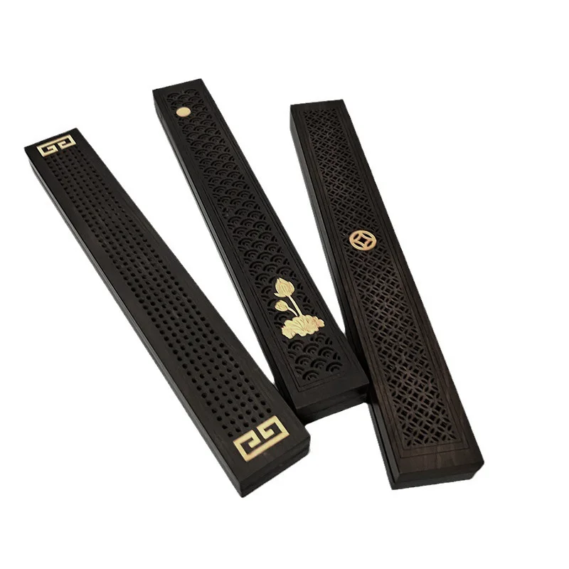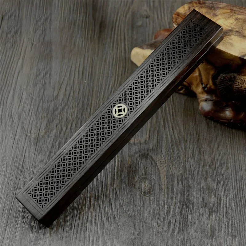 Carving Wooden Incense Holder Censer Box Hollowed Out Black Sandalwood Incense Box Line Incense Burner Handmade Decoration Craft