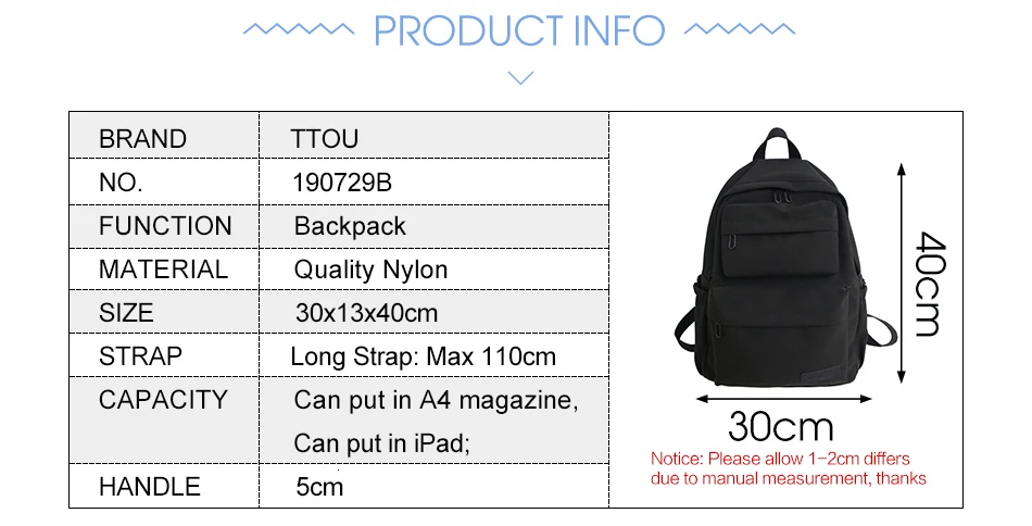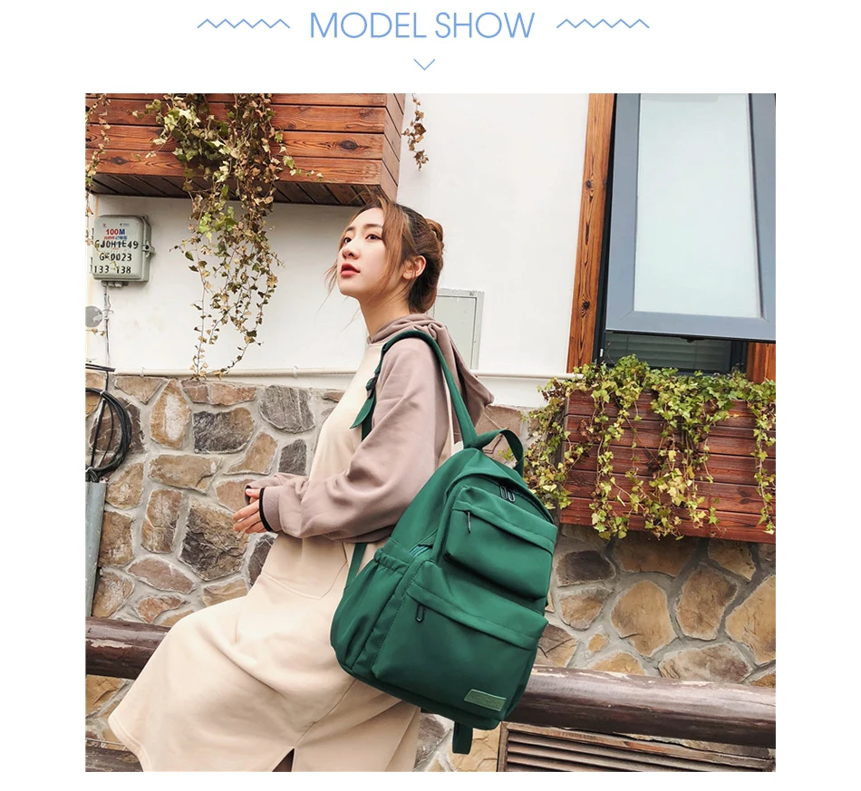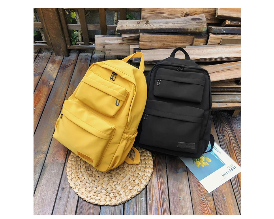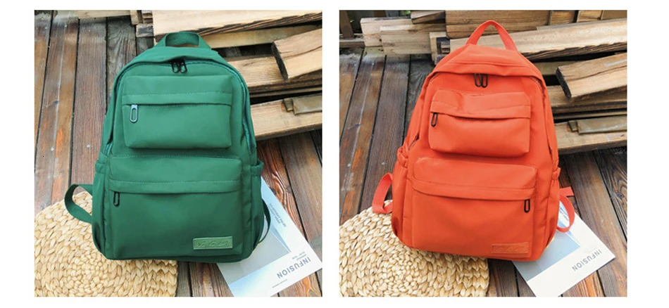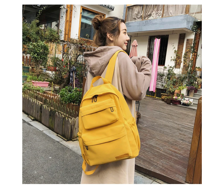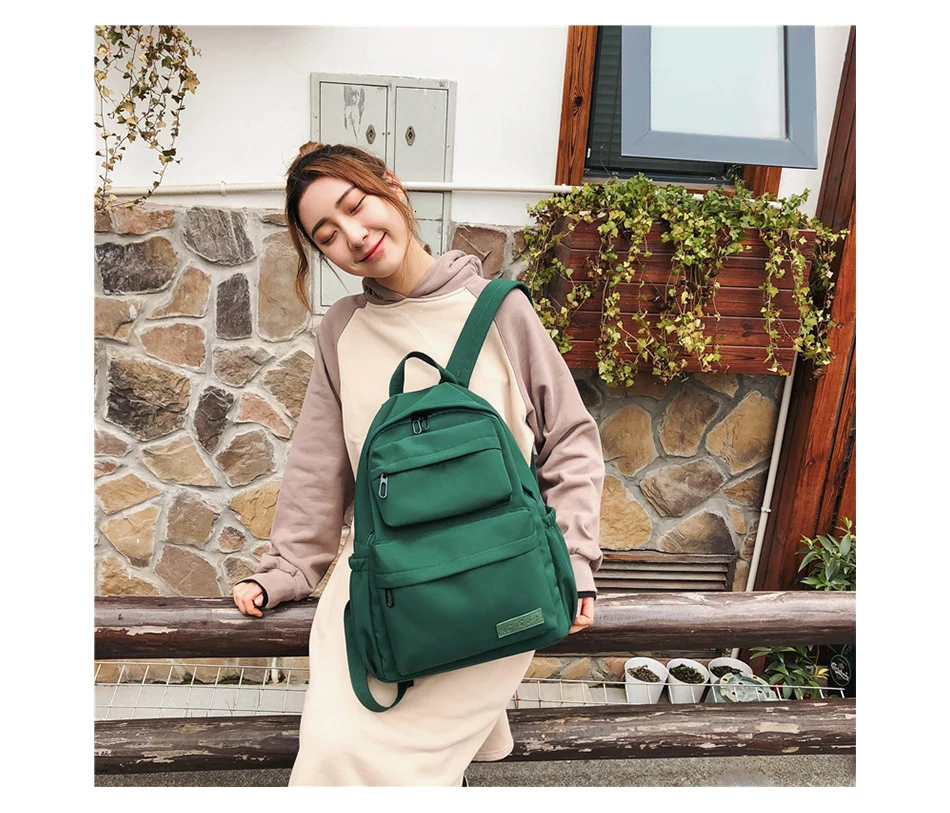 Large Capacity Waterproof Nylon Women Backpack Female Multi Bag Pure Color Travel Backpack Schoolbag for Teenage Girls New