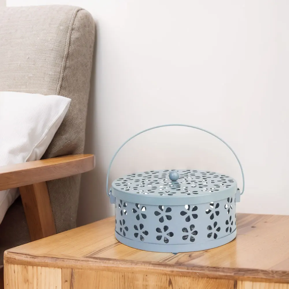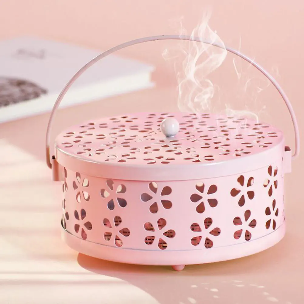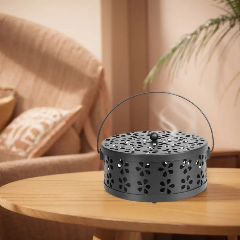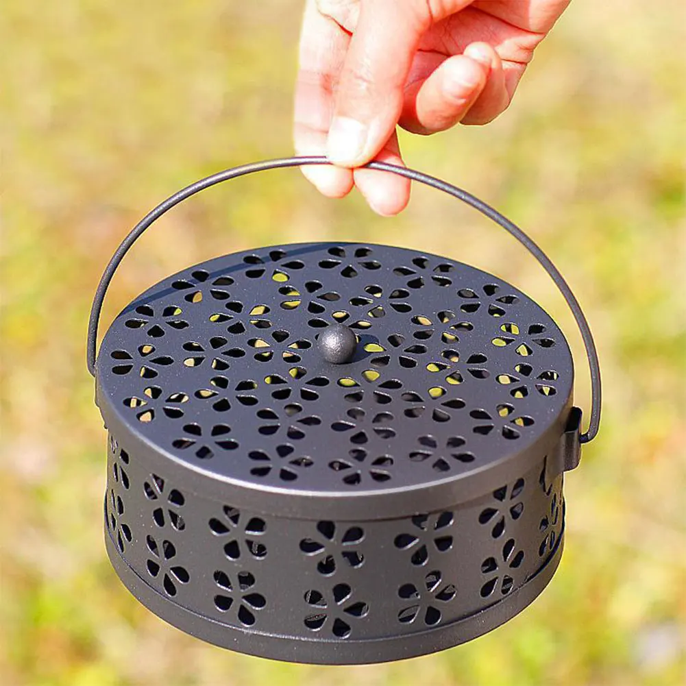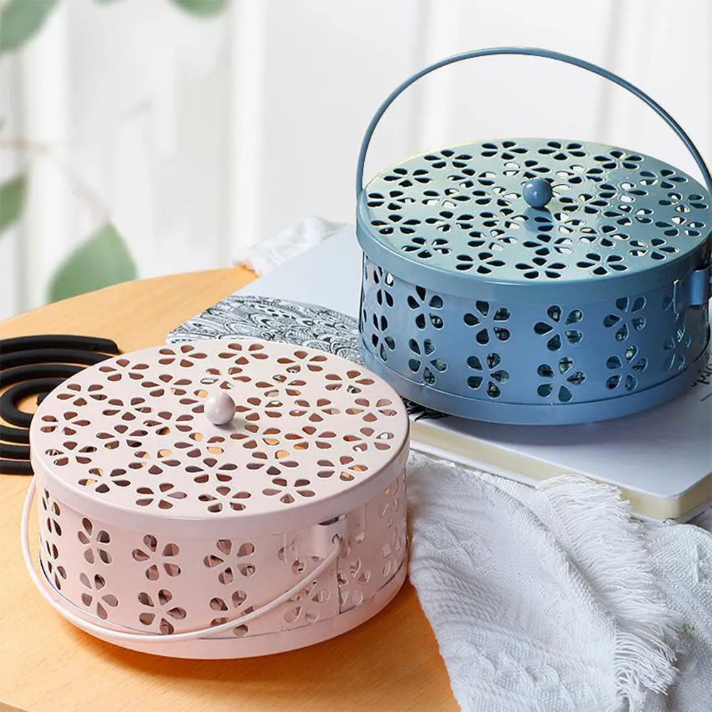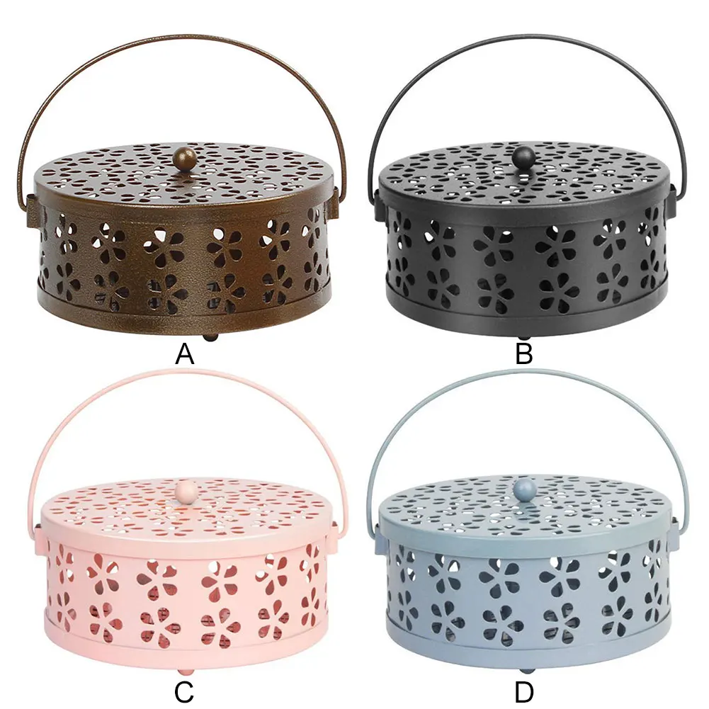 Metal Mosquito Coil Holder with Lid and Handle Incense Burner Holder Mosquito Repellent Coil Holder for Home and Outdoor Camping