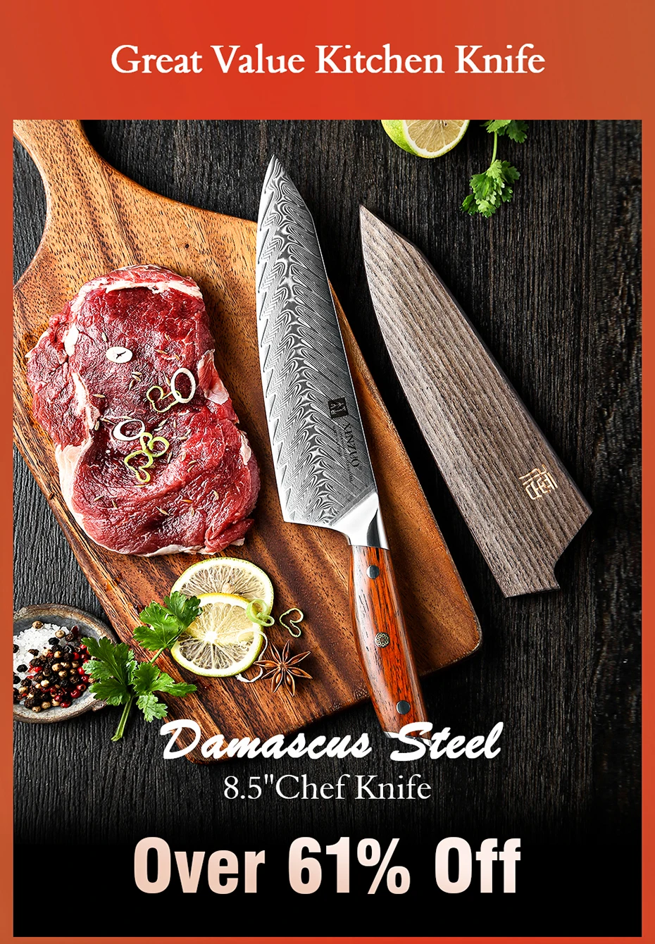 XINZUO Yi Series 2PC Damascus Steel Knife Set