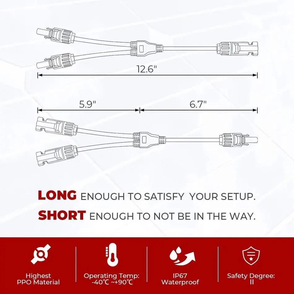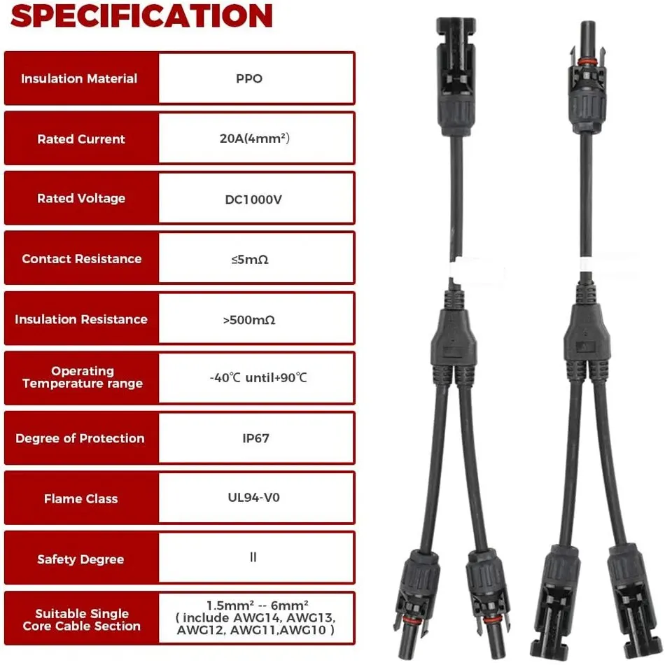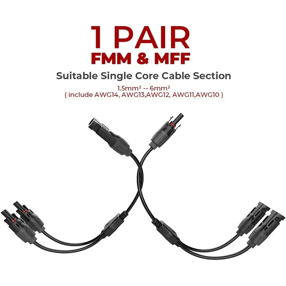 • 【Wide Application】The solar y connector is compatible with various solar cables:14-10AWG (1.5mm² - 6mm²).