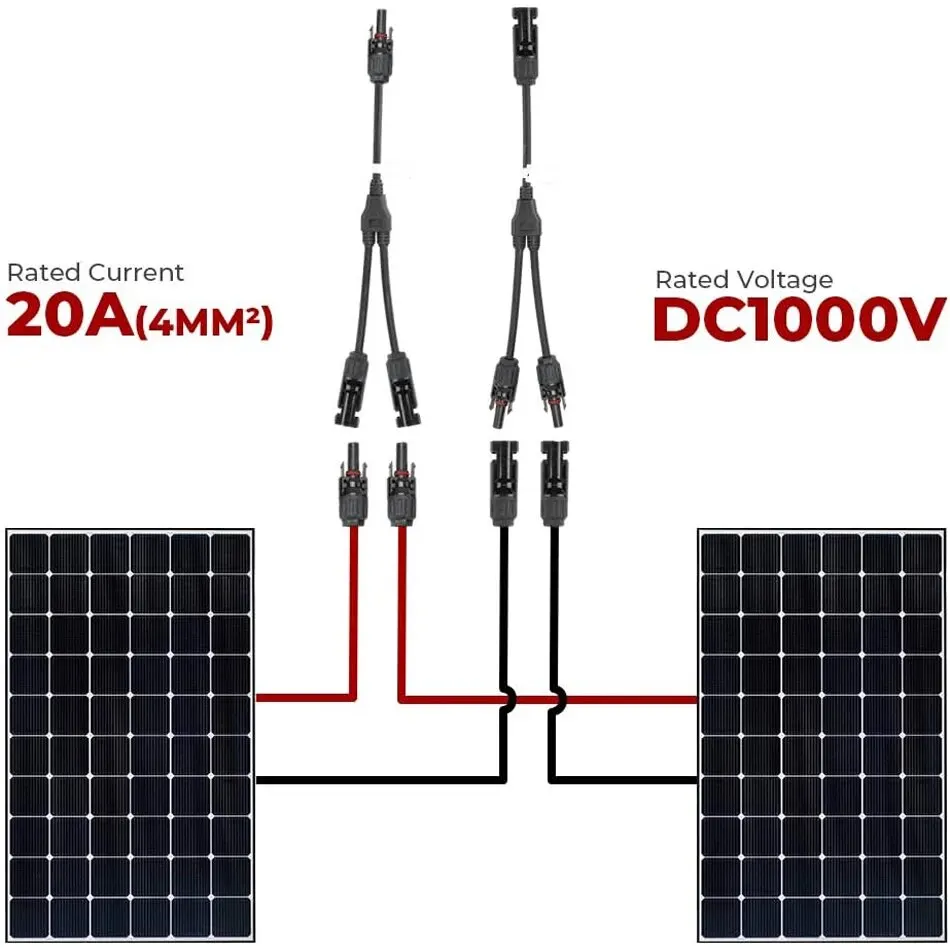 • 【Y Branch Parallel Connector】1 male to 2 female (M/FF) and 1 female to 2 male (F/MM) solar connectors, which can connect 2 solar panels in parallel.