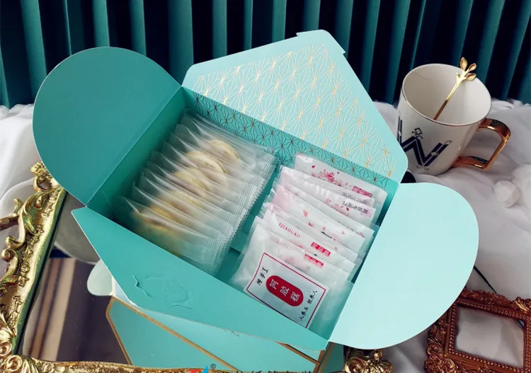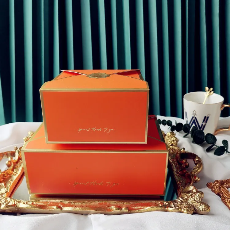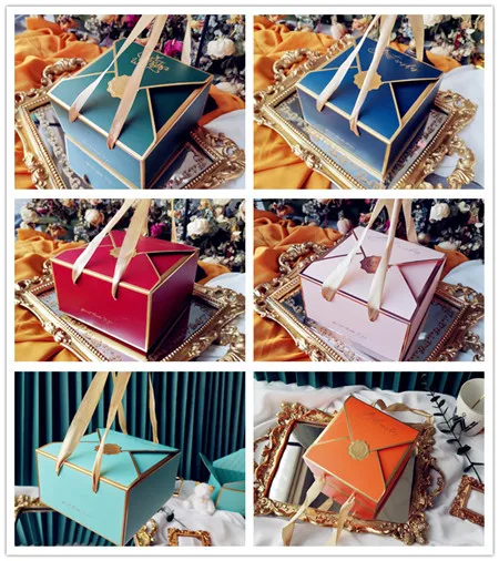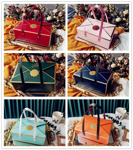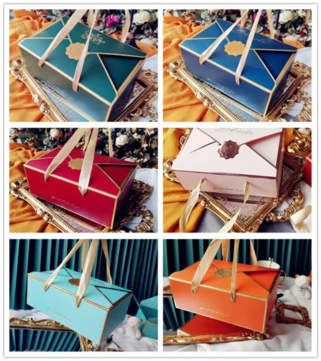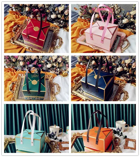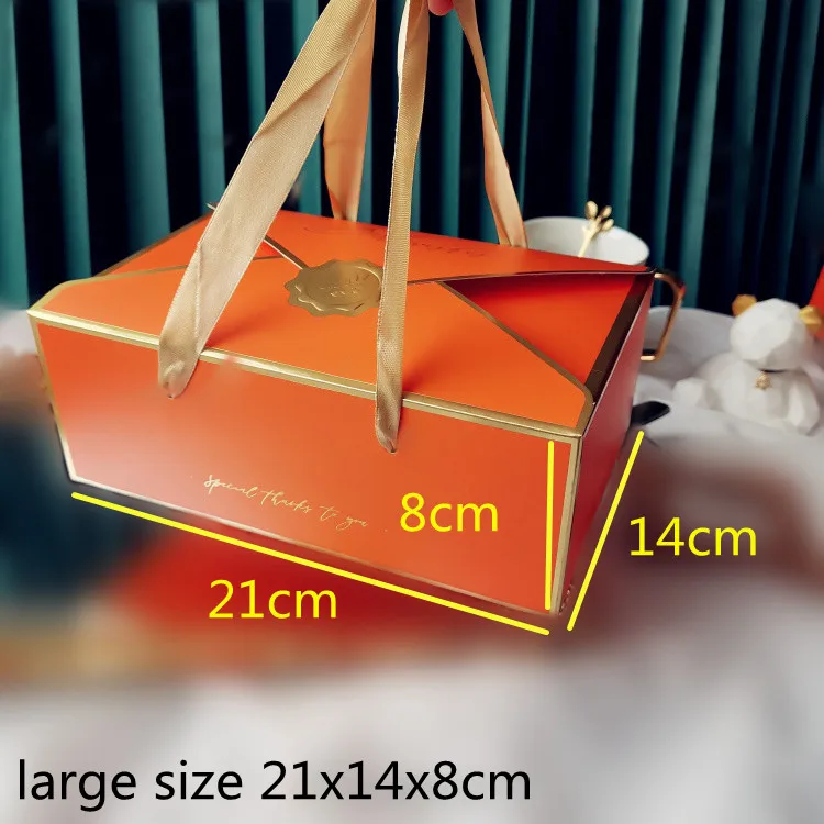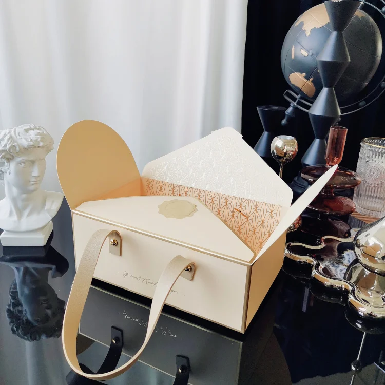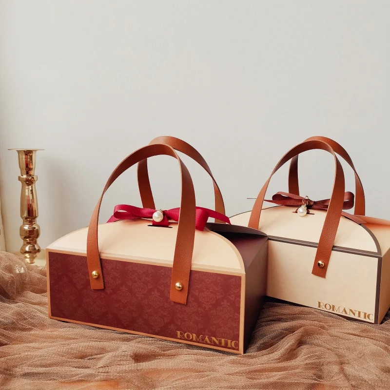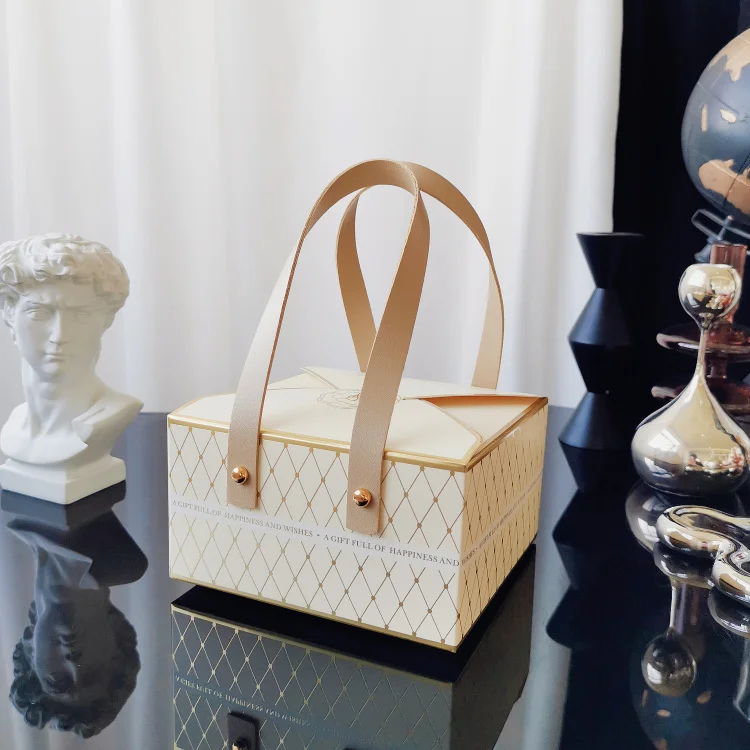 10pcs Gift Boxes Cake Paper Hand Ribbon Baking Box Package Leather Handle Cookie Chocolate Souvenir Wedding Gift Party Packaging