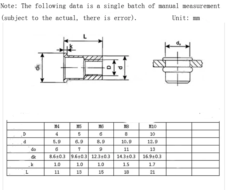 M3 M4 M5 M6 M8 M10 304 Stainless Steel Flat Head Threaded Rivet Insert Nutsert Cap Rivet Nut