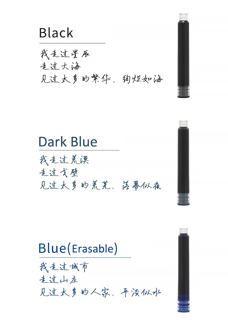 10pcs/pack 2.6mm Caliber Ink Cartridges for Fountain Pens Black/Dark Blue/Red/Erasable Blue Disposable Cartridges Ink Supplies