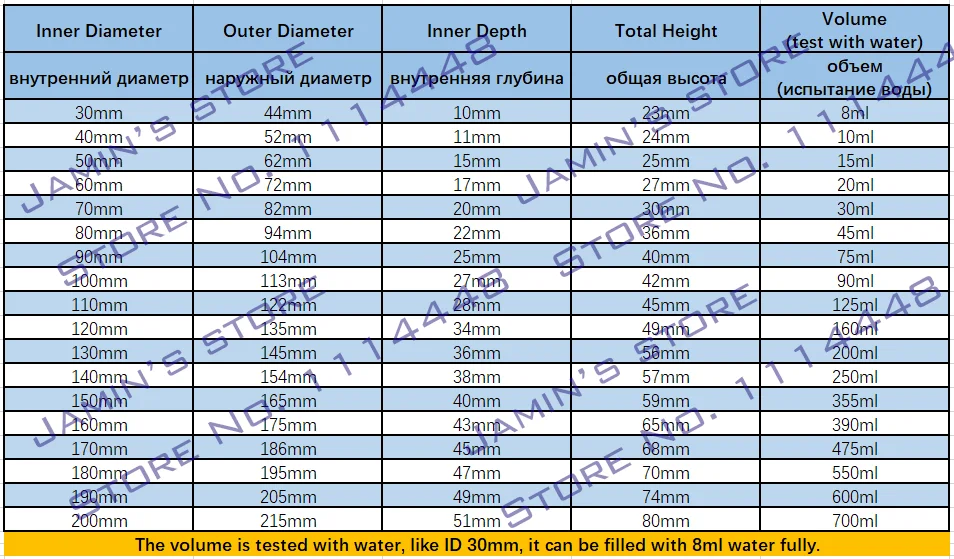 Internal diameter: 30mm, 40mm, 50mm, 60mm, 70mm, 80mm, 90mm, 100mm, 110mm, 120mm, 130mm, 140mm, 150mm, 160mm, 170mm, 180mm, 190mm, 200mm (Optional)