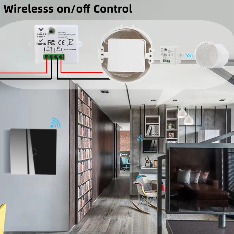 433MHz Smart Light Switch Rf Wireless Touch Wall Switch with Remote Control Tempered Glass Panel Switch for Home LED LAMP 220V