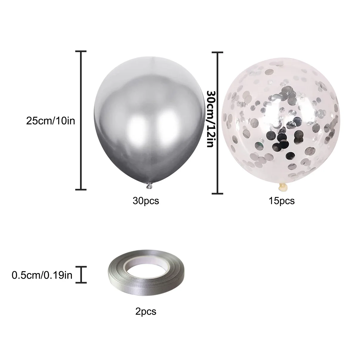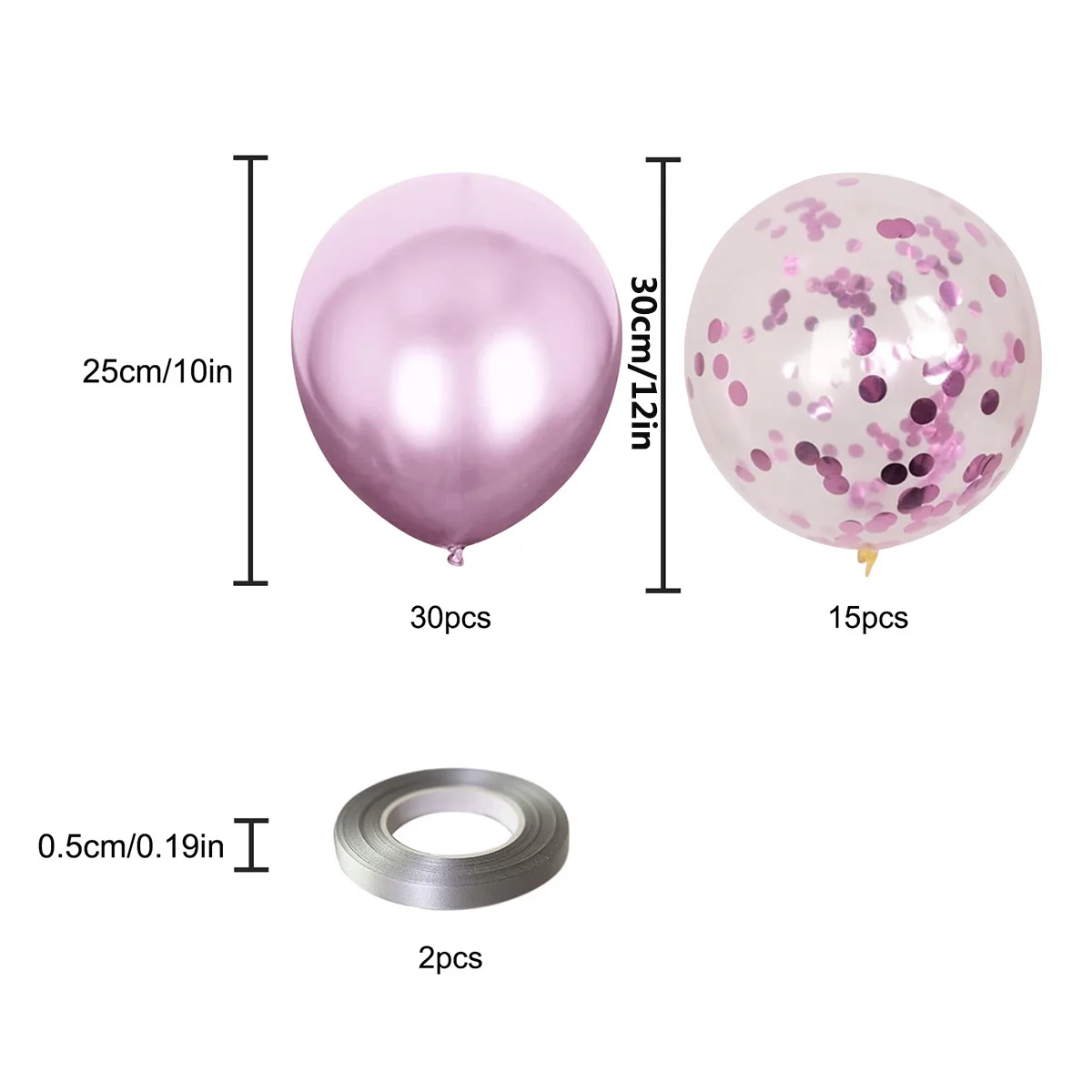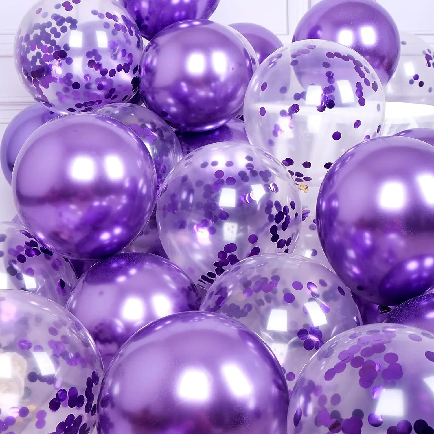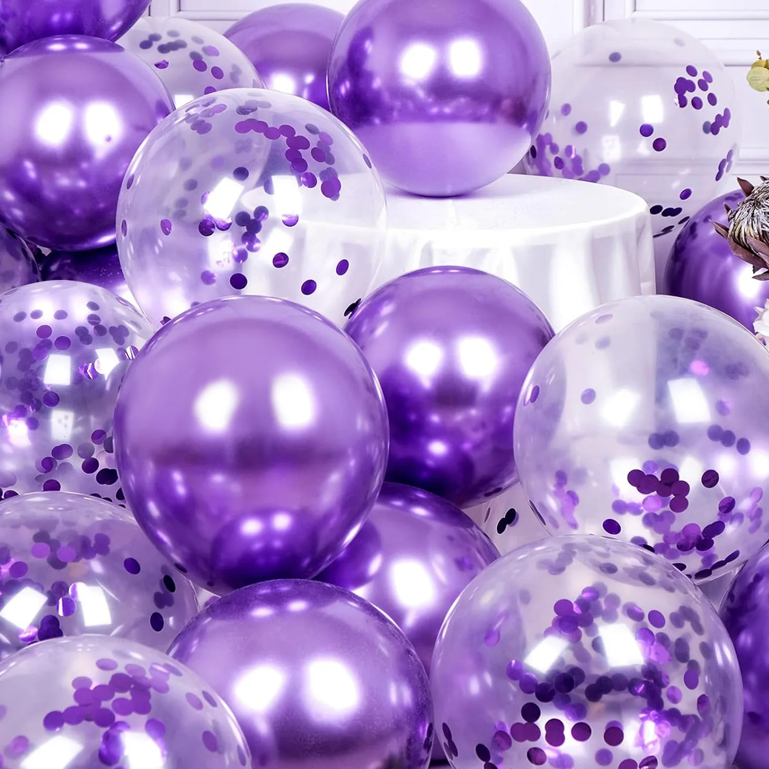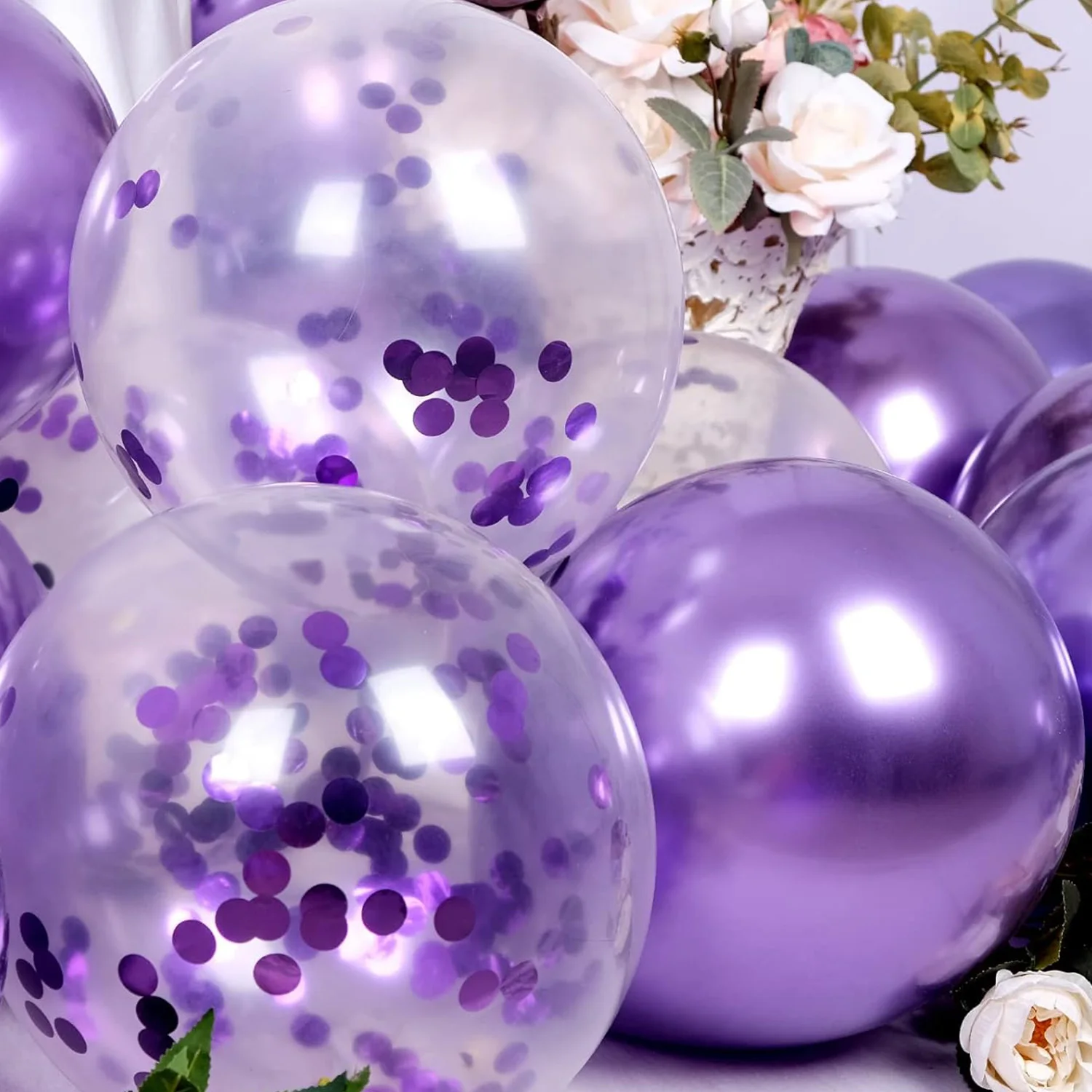 [ Premium Value Pack ] - This metallic purple balloons set is a new combination of purple metallic balloons and purple confetti balloons; 30pcs 10 inch purple metallic balloons, 15pcs 12 inch purple confetti balloons, and 2 silver curling ribbons for you to throw a memorable party