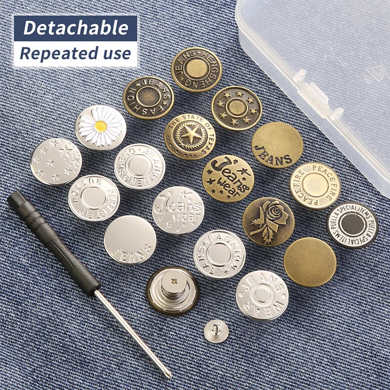 5/10/20pcs jeans button adjustable waist shrinker Nail free metal button Removable I-button seam free waist button