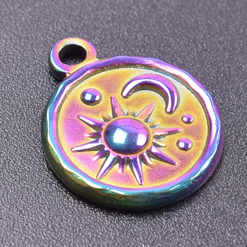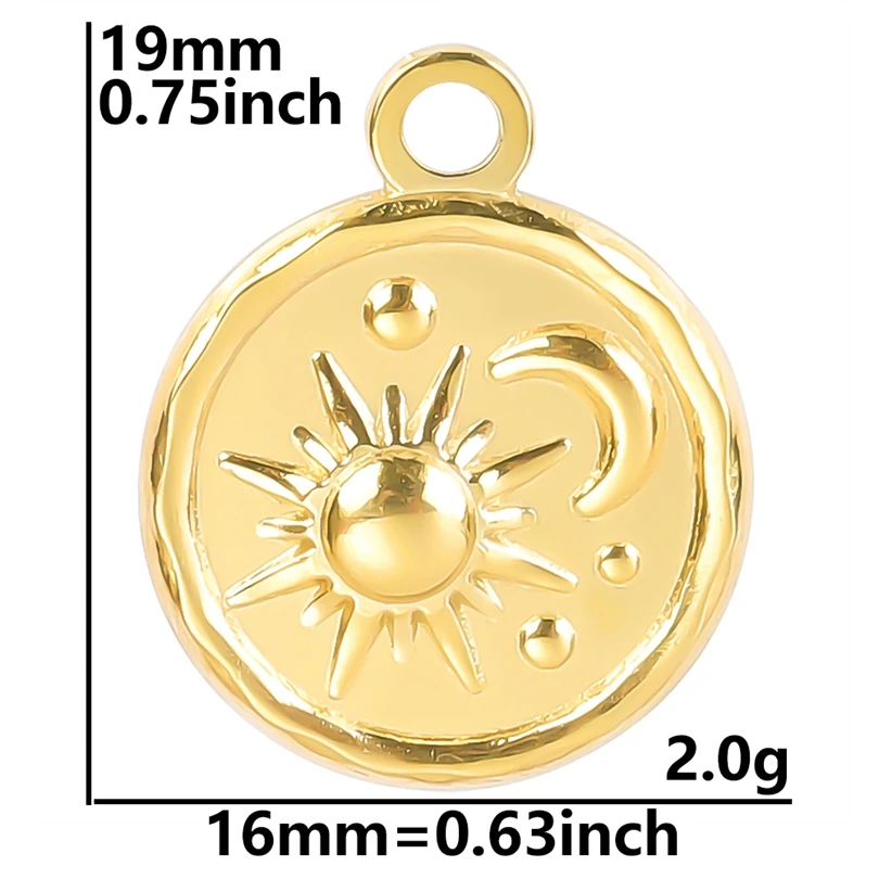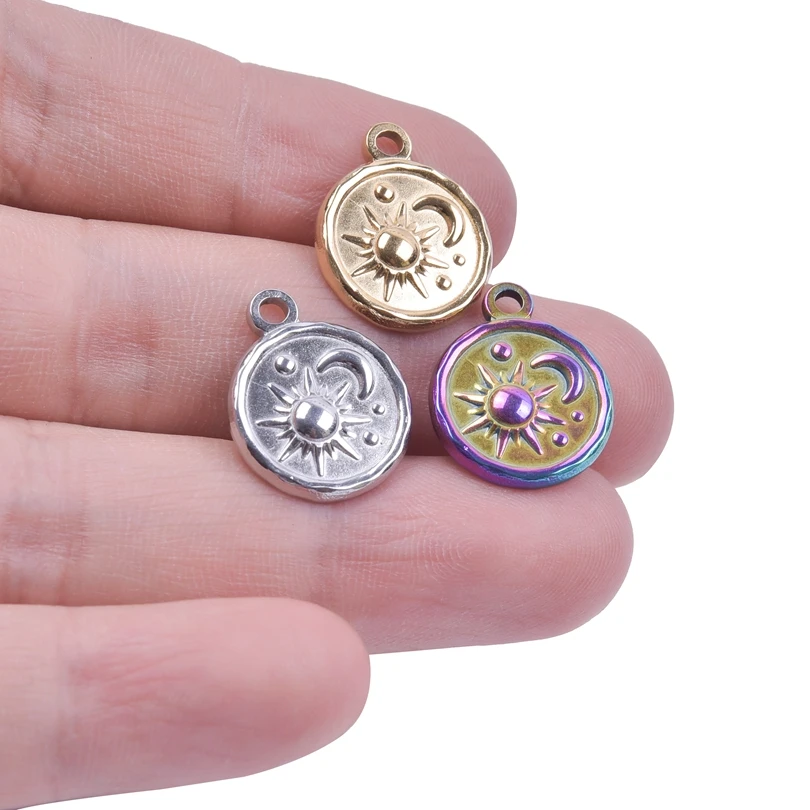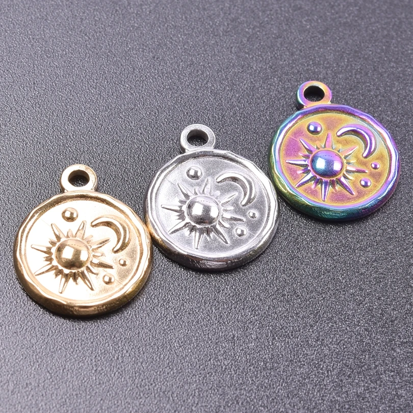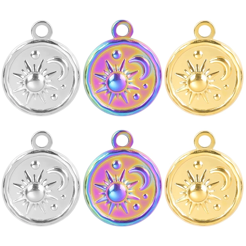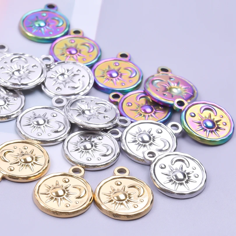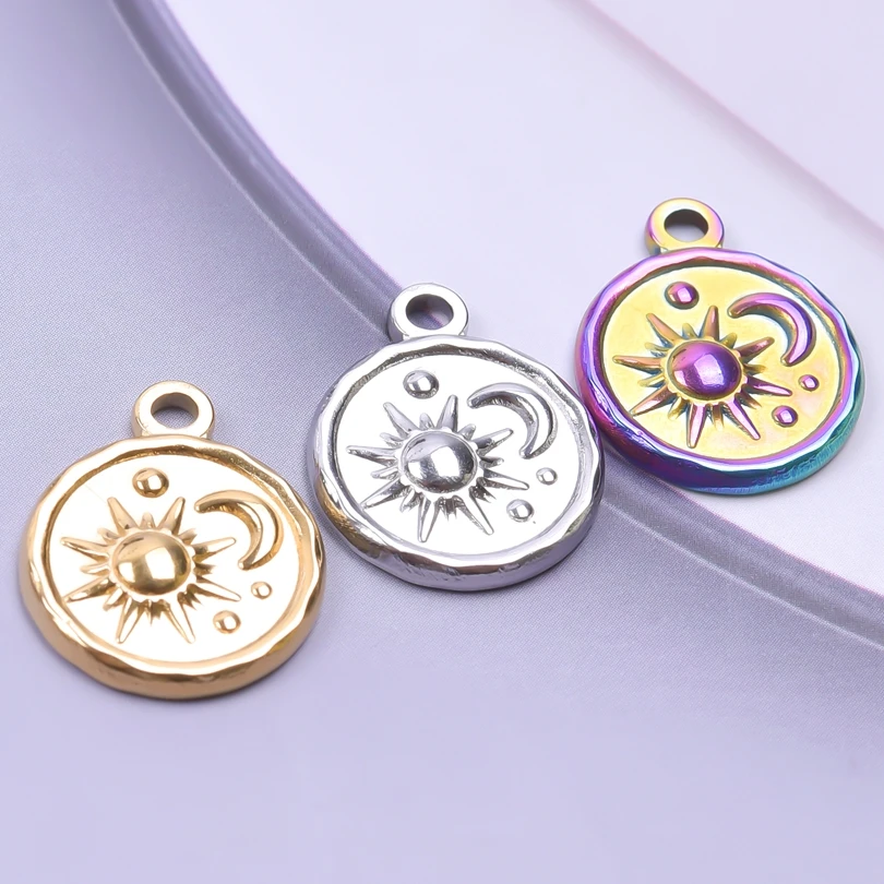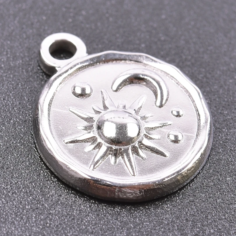 5pcs Stainless Steel Round Moon Sun Charm Pendant for Jewelry Making Supplies DIY Necklace Bracelat Earrings Pendant Accessories