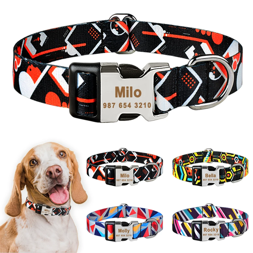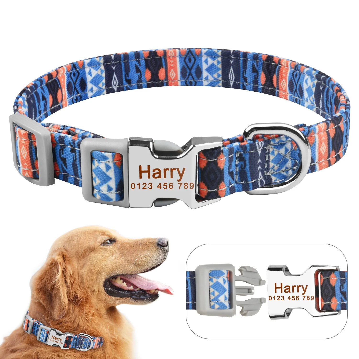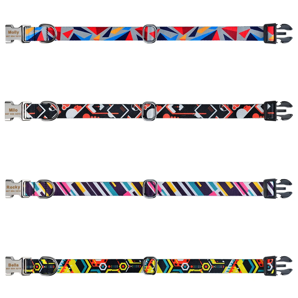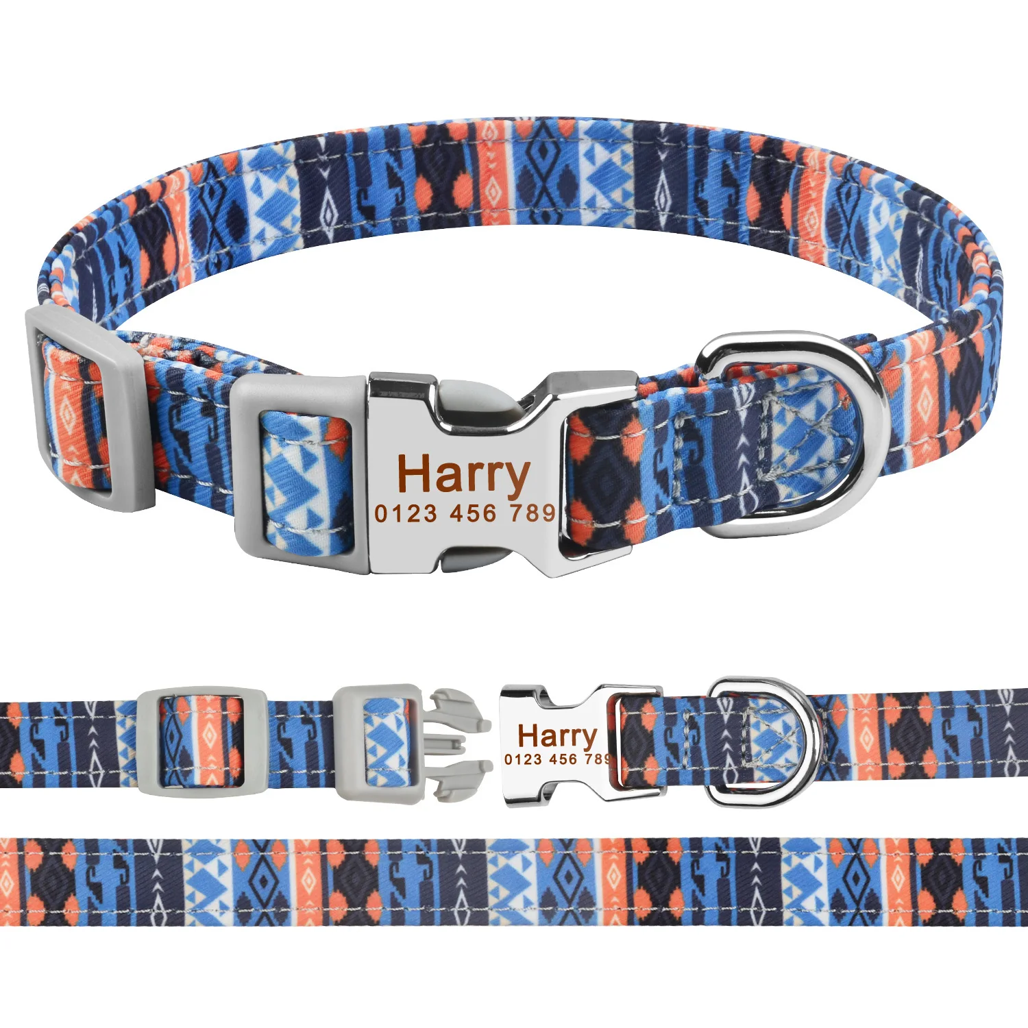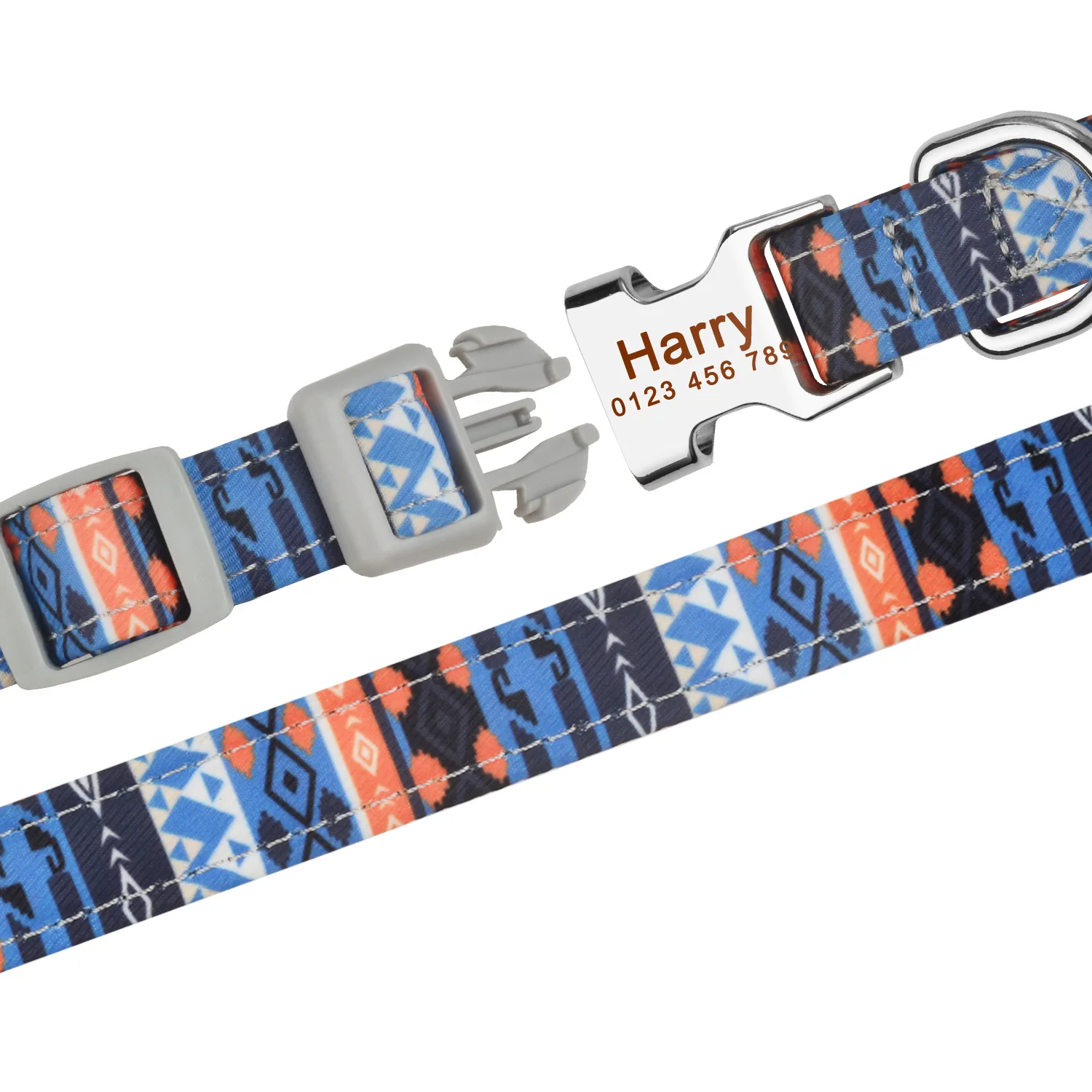 Adjustable Nylon Plaid Unisex Dog Collar Personalized Dog Collar Custom Free Engraved Name ID Tag Small Large Product Dog Collar