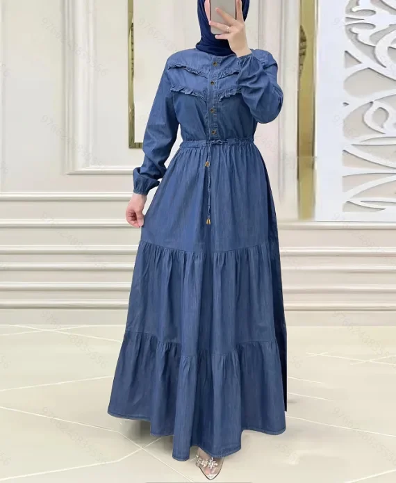 Arabia Dubai Abayas Muslim Dress Women Fashion Button Slim Dress Elegant Party Dress for Women Turkey Islamic Clothes Vestidos