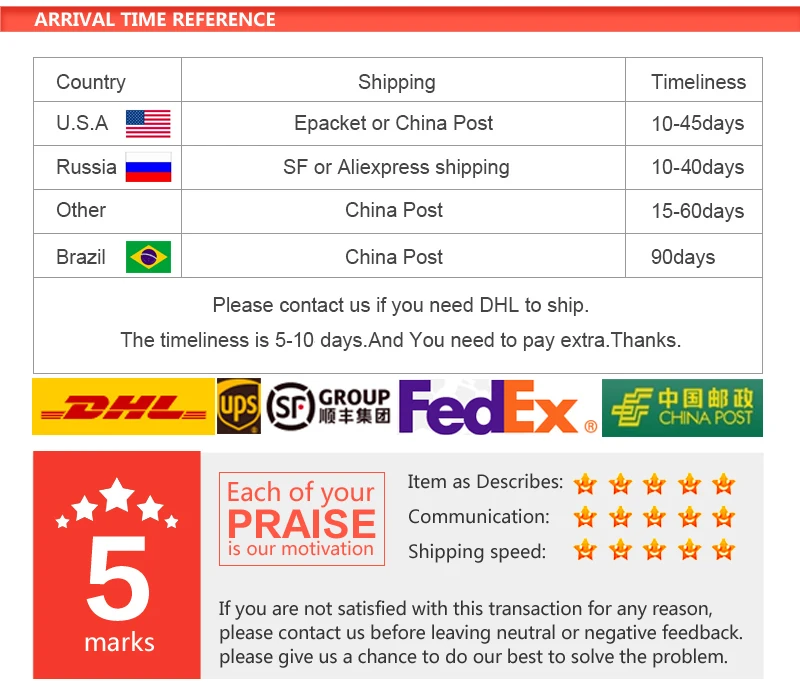6.If you don't satisfied with our products, pls contact us before you leave negative feedback or do the detailed rating.