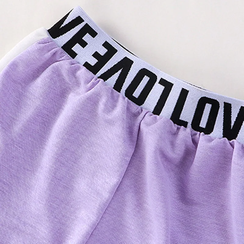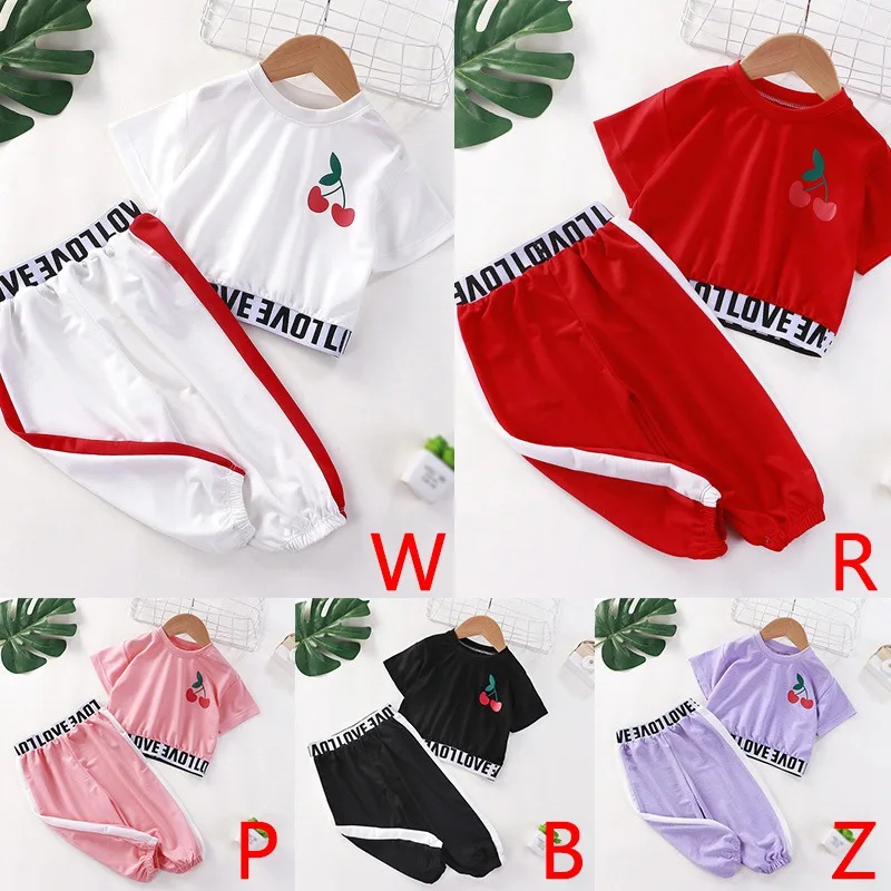 Children Kids Baby Girls Clothes Set Summer Short-sleeved Round Neck T Shirt and Solid Color Elastic Long Pants Fashion Suit