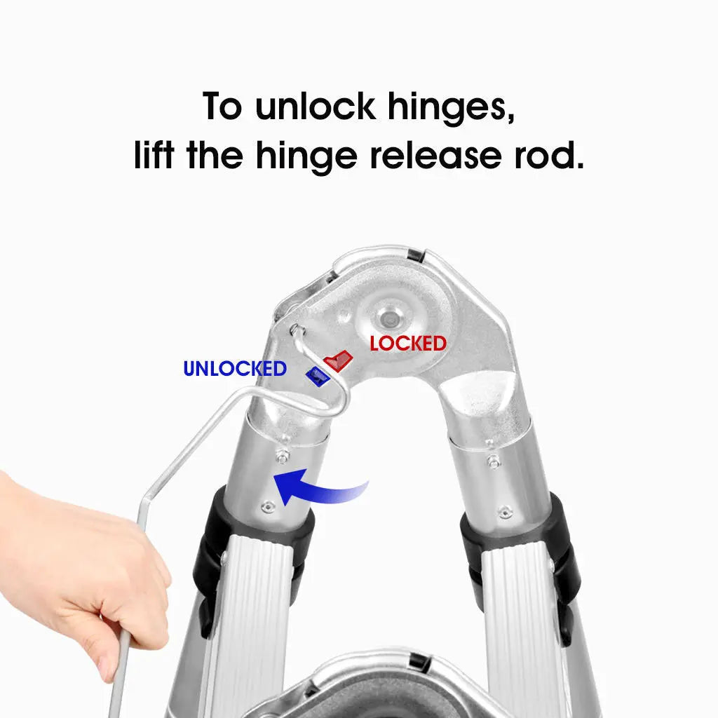 1.Please keep both sides of the rungs in balance, and then pull the rung up. Once you hear 2 clicking sounds, it means that it is automatically and successfully locked.