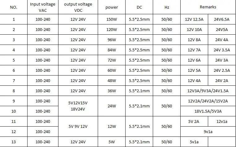 The output voltage (output): DC5V 9V 12V 15V 18V 24V