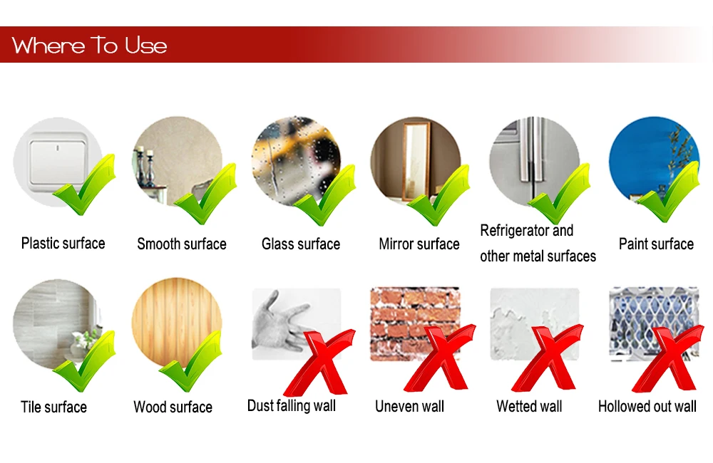Where to apply: Smooth and clean wall glass metal wood etc
