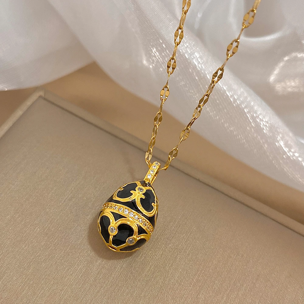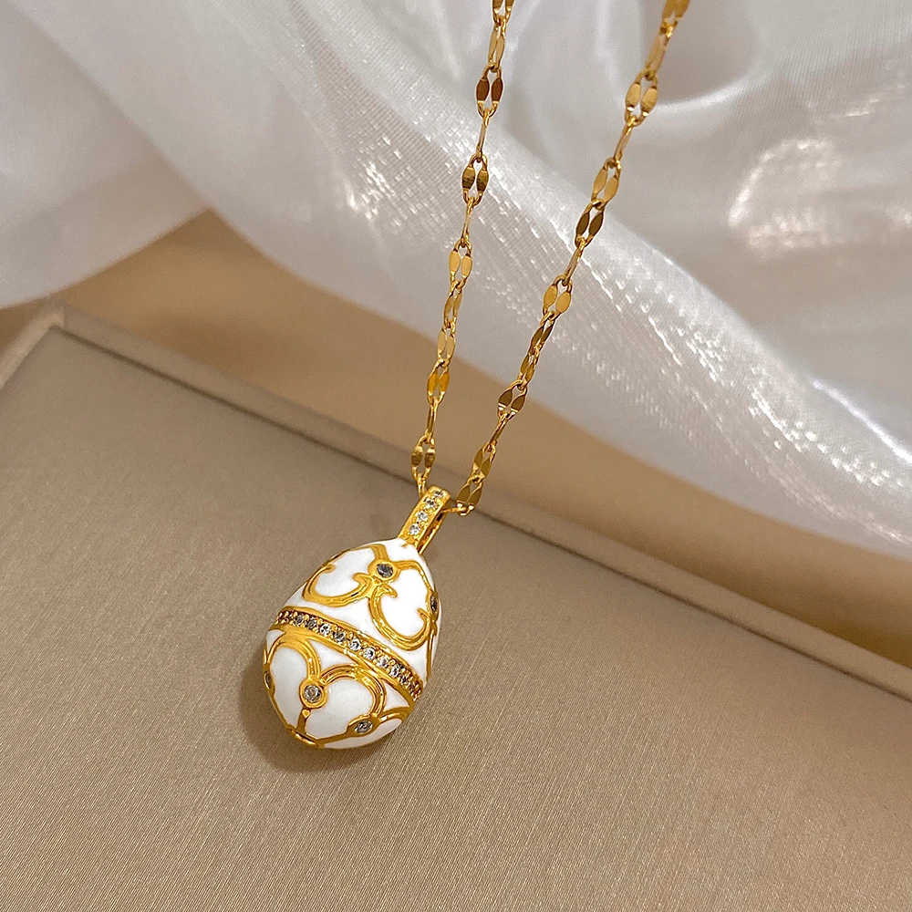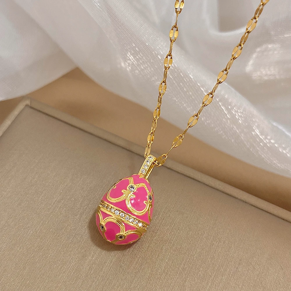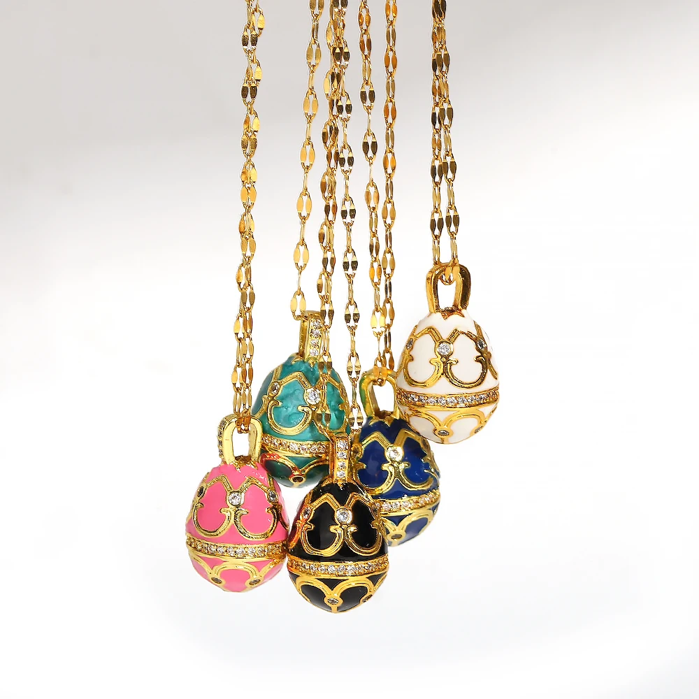 Greatera Colorful Enamel Easter Egg Pendant Necklaces for Women Guilloche Locket Egg Gold Plated Chain Necklaces Party Jewelry