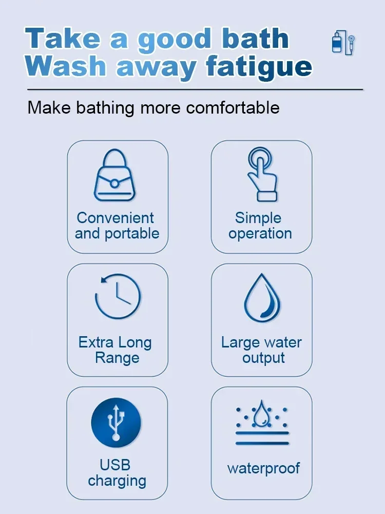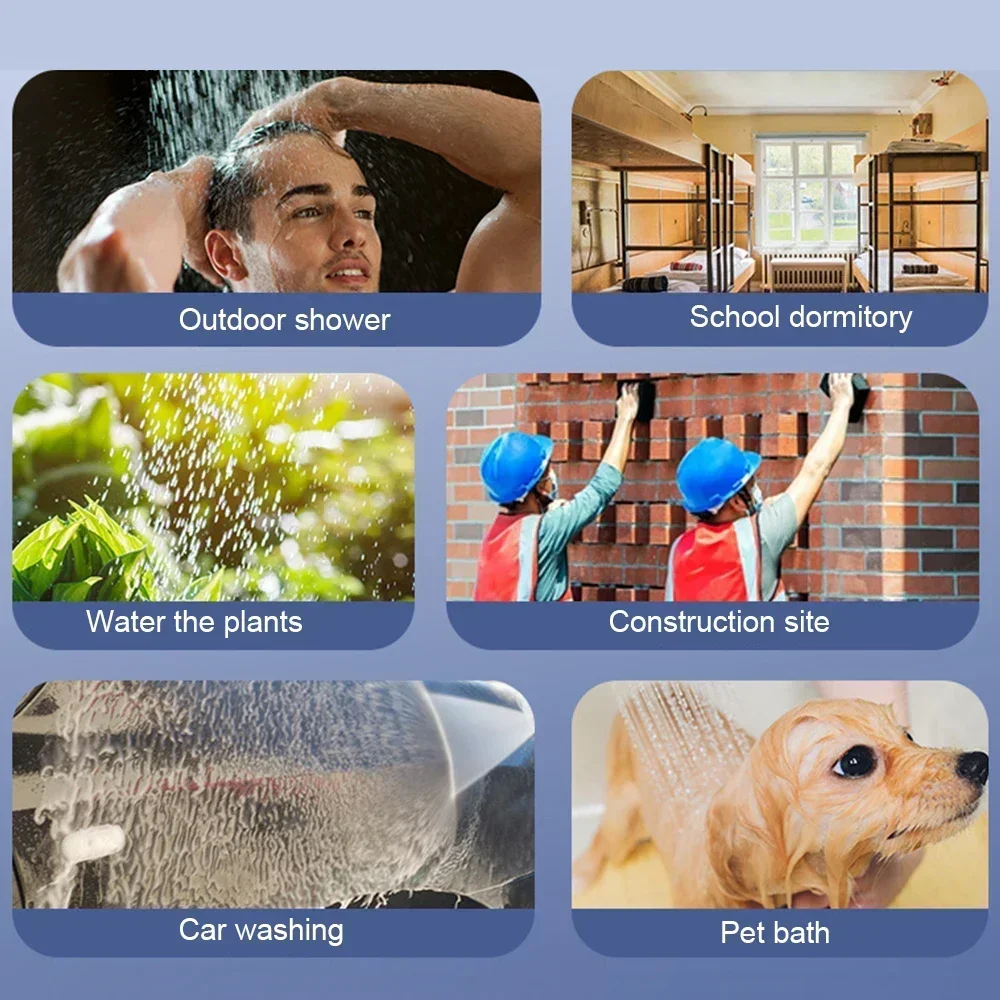 【Wide Applications】Camping showers can be used for student dormitories, rented houses, rural homes, outdoors, camping, backpacking, hiking, kid bathing, pet cleaning, car washing, plant watering, windows, and backyard cleaning, or washing the sand the beach.