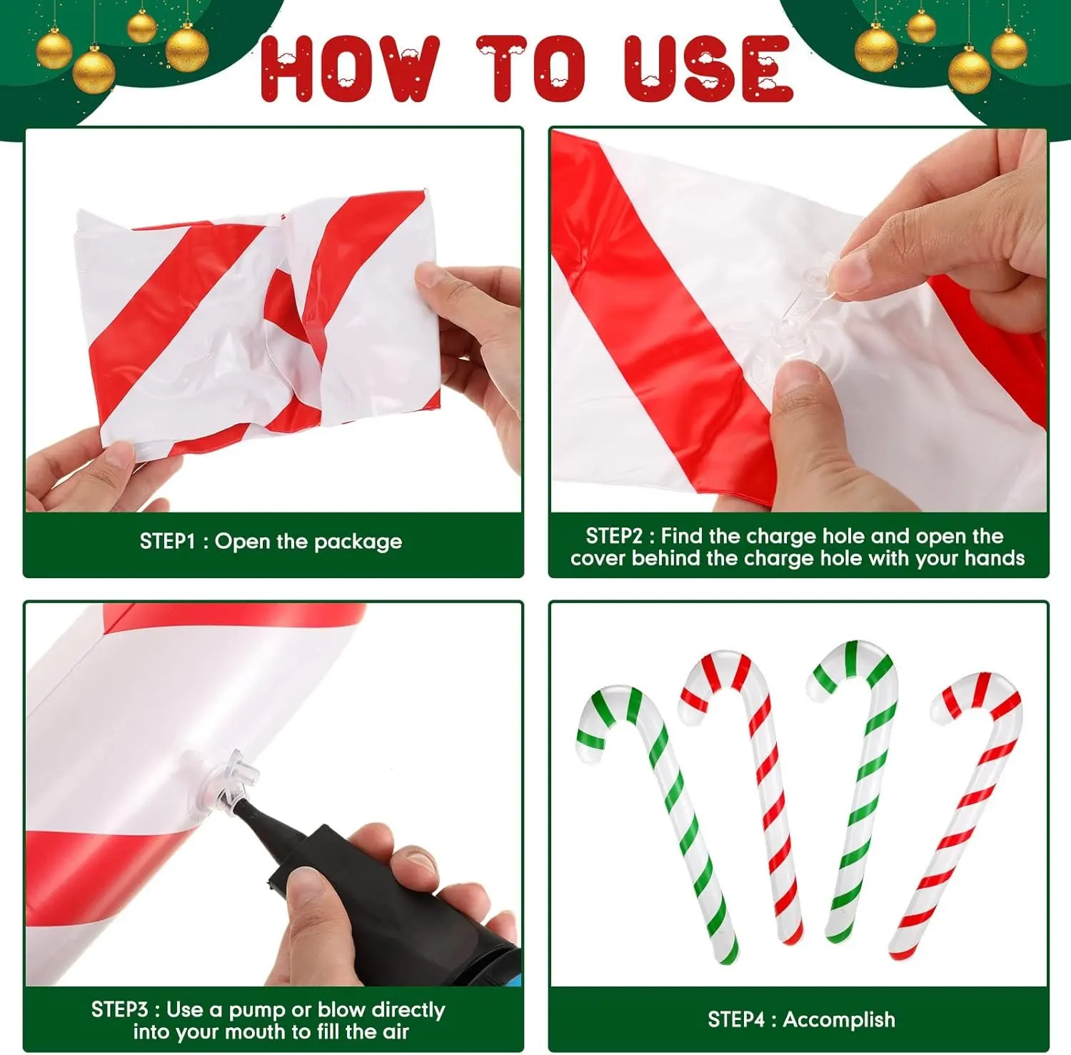 Inflatable Christmas Candy Cane Red White Stripes Candy Cane Balloons Xmas Tree Hanging Ornament New Year Party Decor Kids Gift