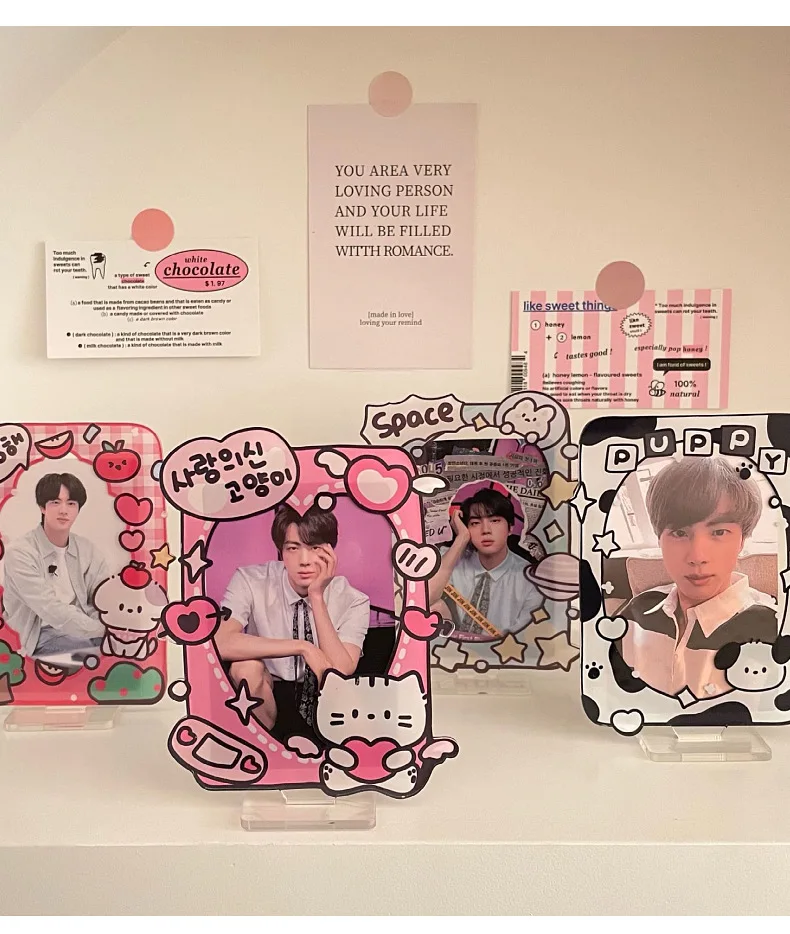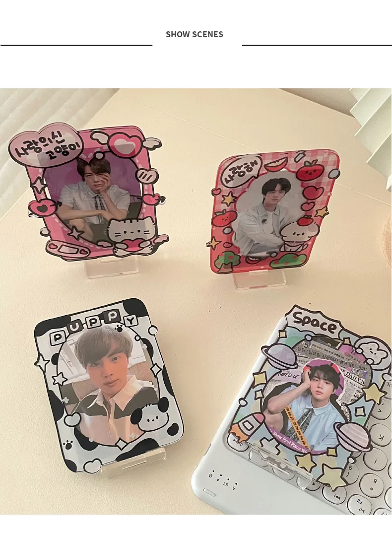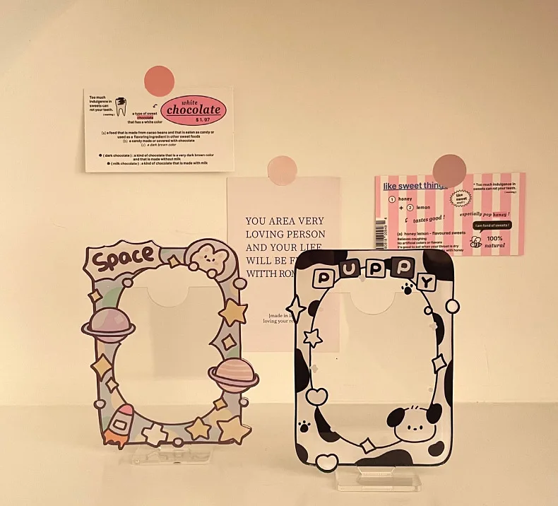 Kawaii Photocard Holder Lovely Cartoon Puppy Acrylic Display Standing Idol Kpop Family Friend Photo Holder Student Supplies