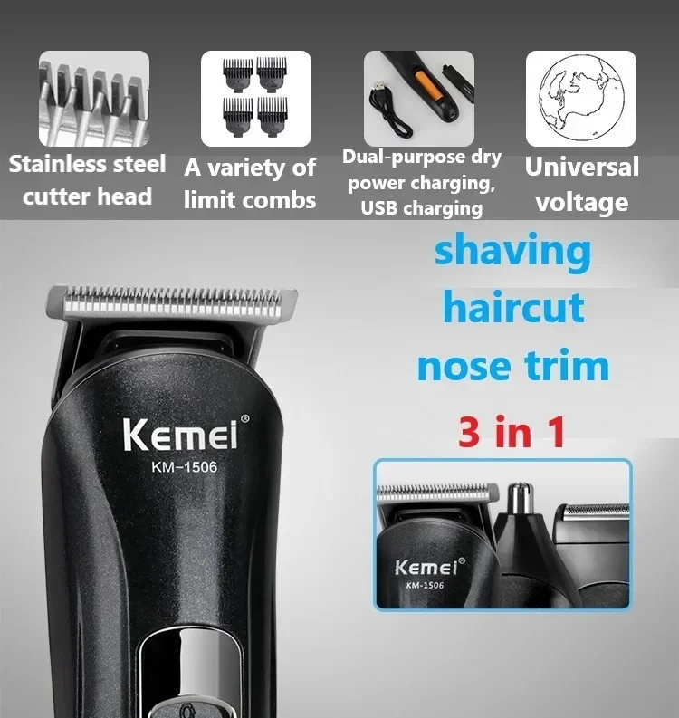 Kemei KM-1506 3 In 1 Electric Shaver USB Charging Hair Trimmer Electric Rechargeable Nose Professional Shaving Machine trimmer