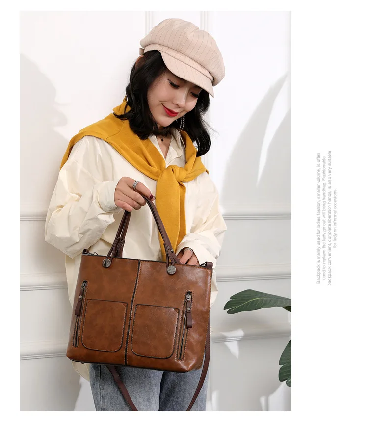 Premium Quality:Crossbody handbag is made of grain leather with a waxing and oiling finish, and durable and smooth fabric lining, these make the leather handbags more luxurious.