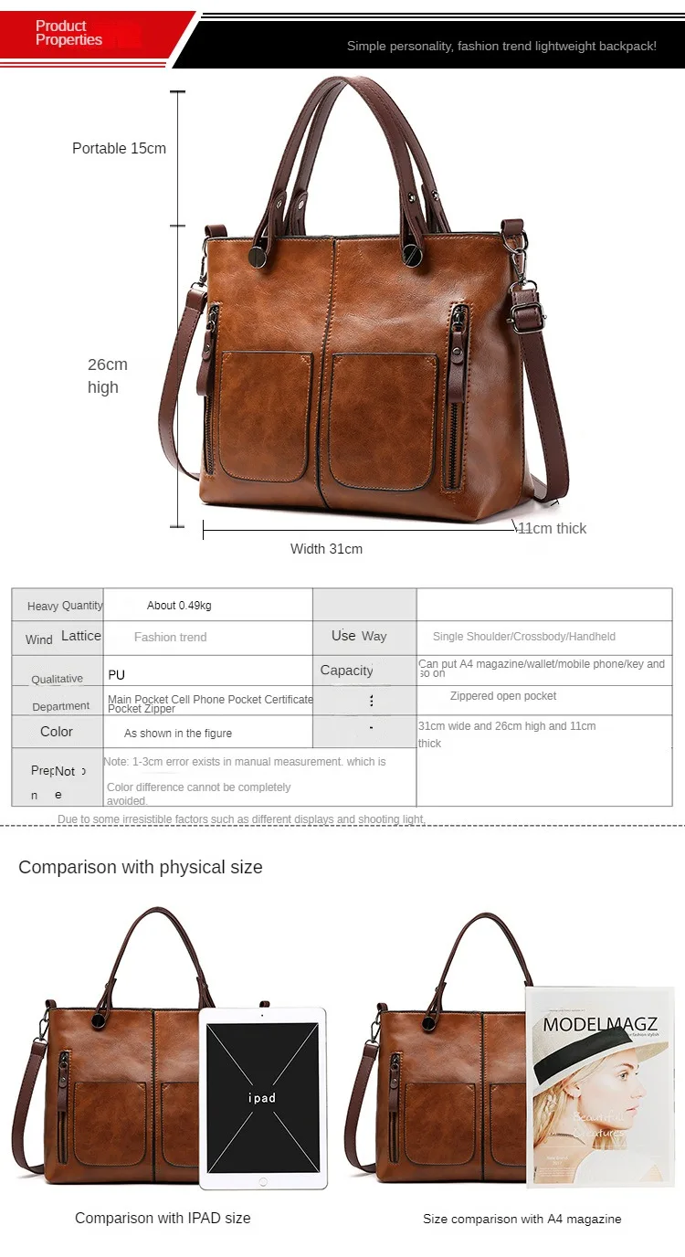 Size:As Picture Shown Ladies Vintage Leather Shoulder Bag:Classical pure color design, vintage oil pu leather, four colors to choose from. Add instant sophistication to any outfit in any season with this elegant leather bag.