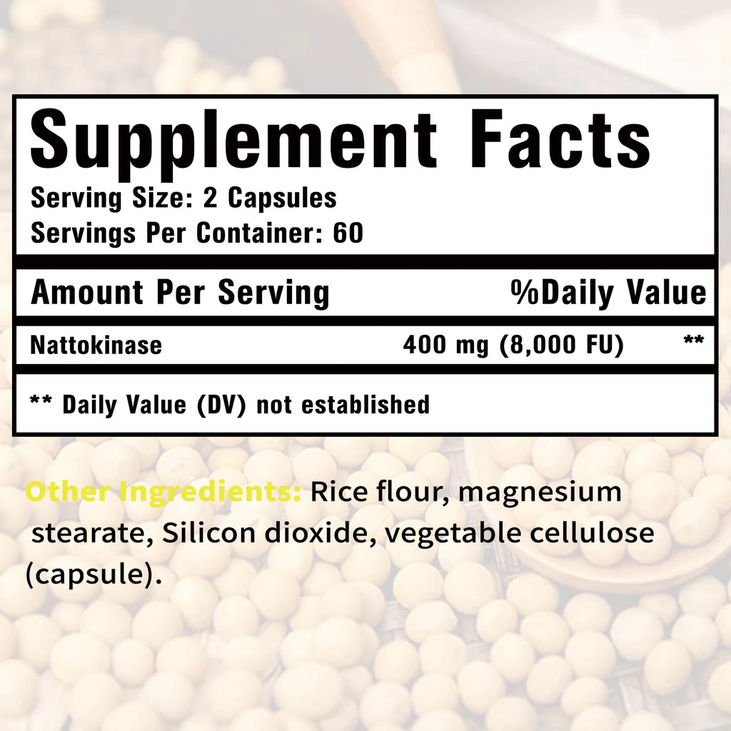 Maximum strength 8,000 FU per serving Nattokinase, derived from pure fermented natto extract, a centuries-old staple in Japanese cuisine, delivers trusted enzymatic benefits.