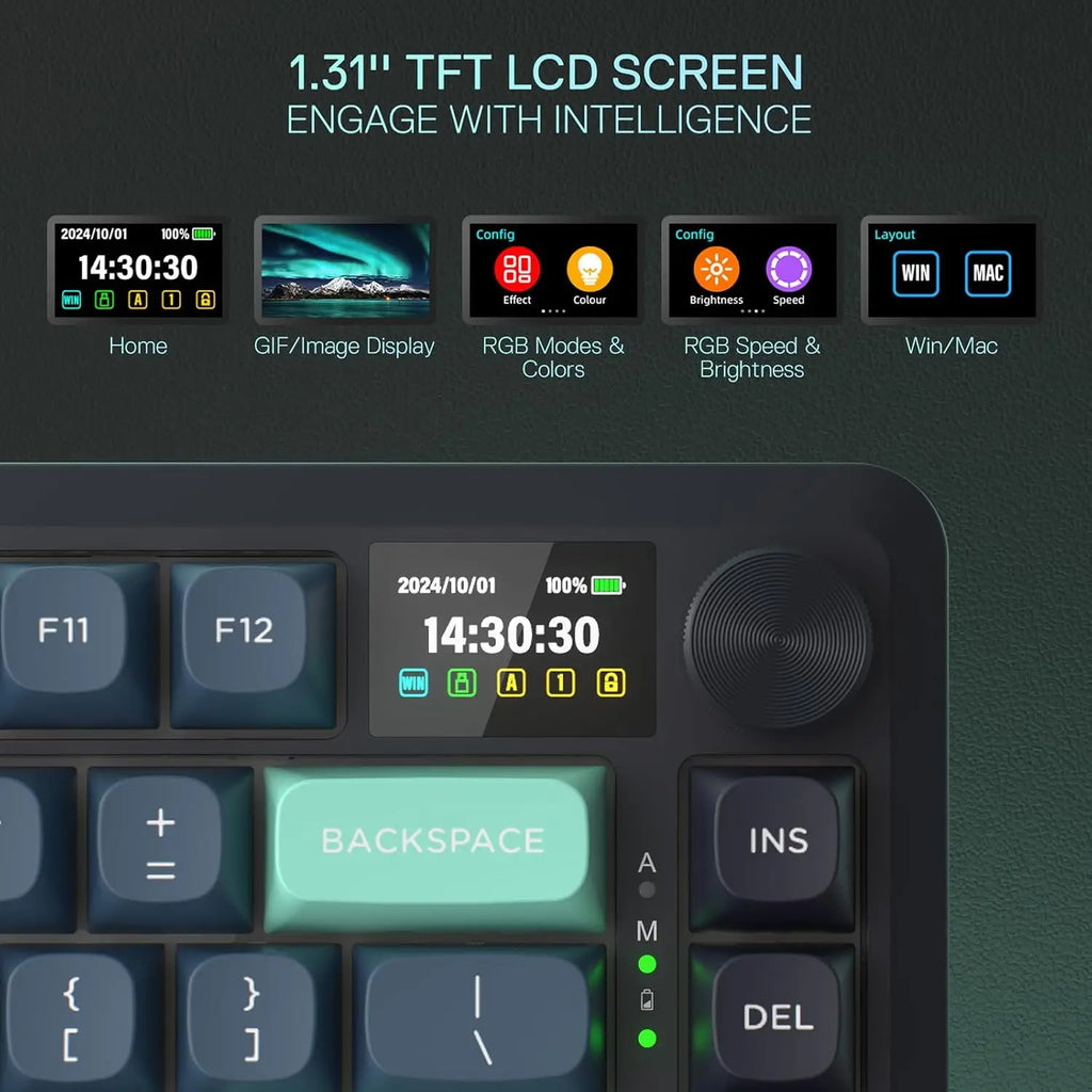 Smart Info-Island Screen - 1.41 in info center TFT screen, gathering keyboard info, connection mode, battery level, typing status, unveiling everything you want to know, enjoy gif meme customized fun for the present mood