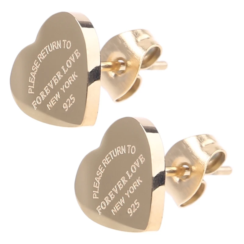 Stainless Steel Love Forever Heart Stud Earrings Gold Plating Earrings Party Wedding Fashion Jewelry Unisex Dropshipping