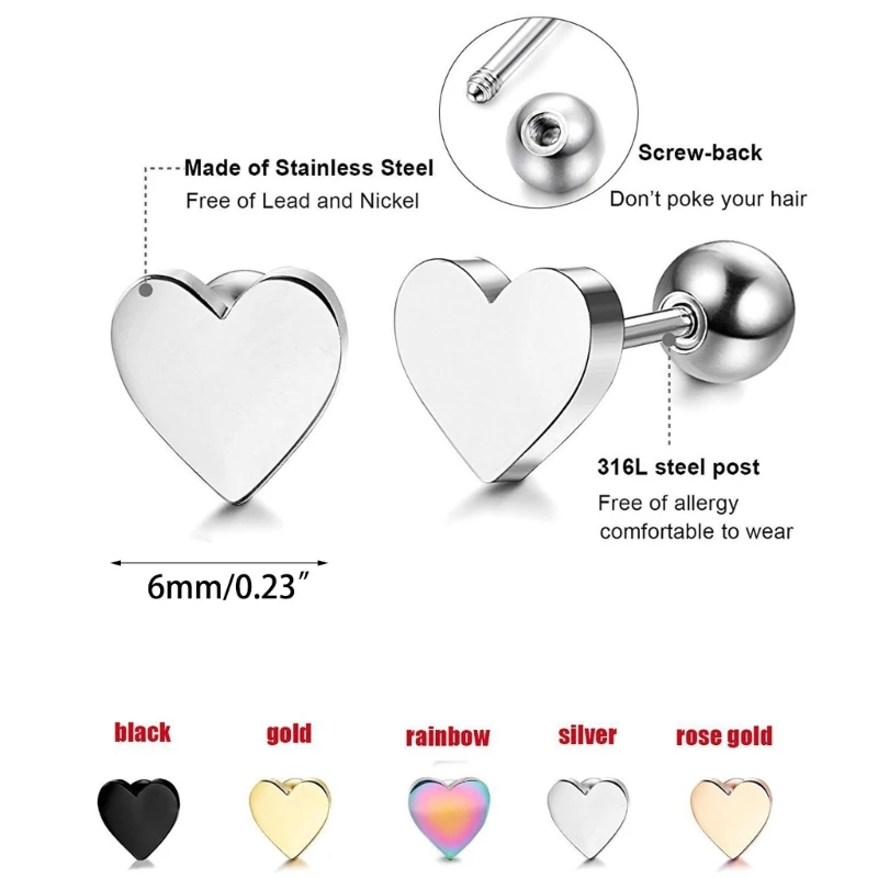 Minimalism Stainless Steel Love Forever Heart Stud Earring Gold Plating Earrings Party Wedding Fashion Jewelry Unisex
