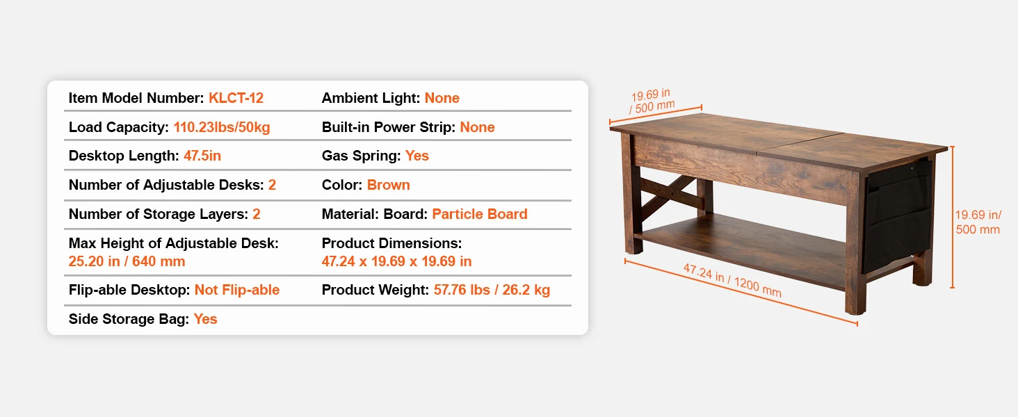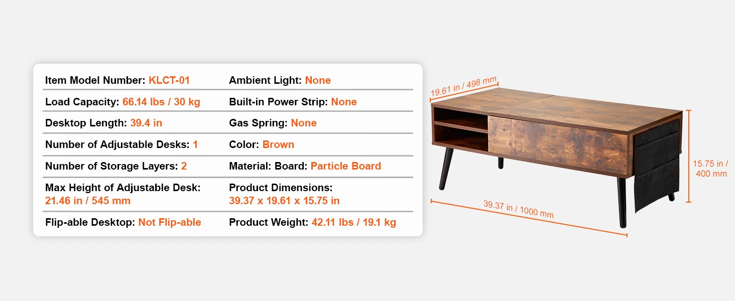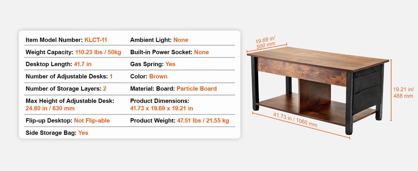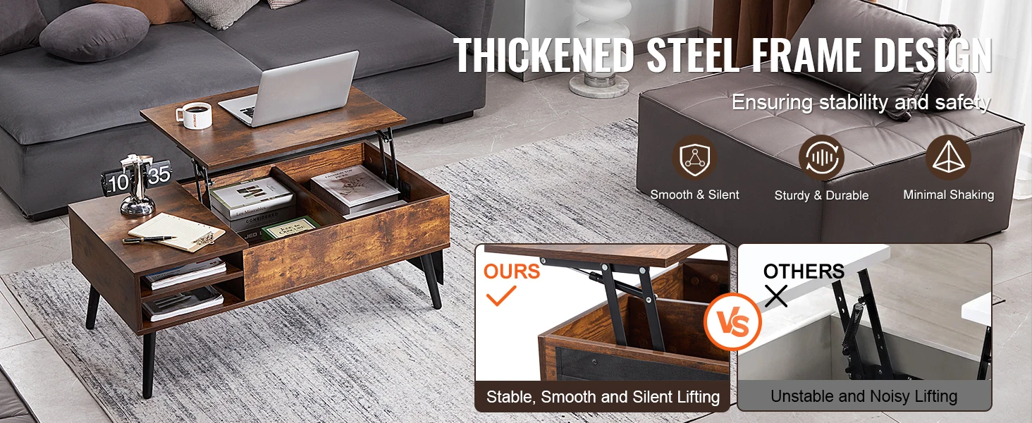• Pneumatic Lifting Mechanism: The lift top coffee table has a high-quality metal structure. The lifting mechanism works smoothly and silently. Made with particleboard, it's stable and sturdy after correct assembly and has a strong load-bearing capacity.