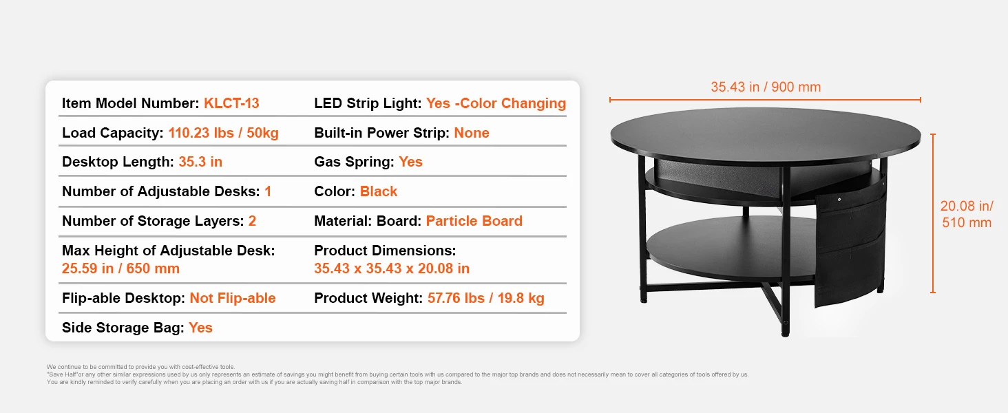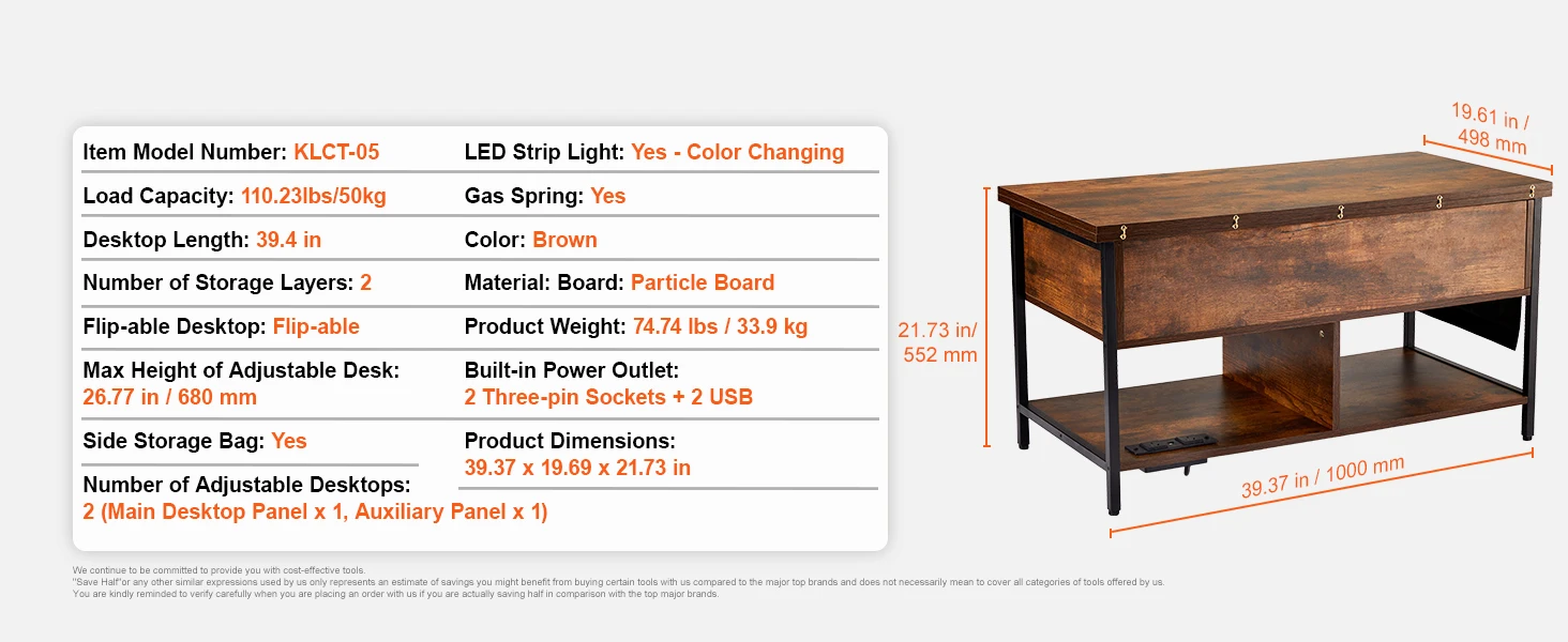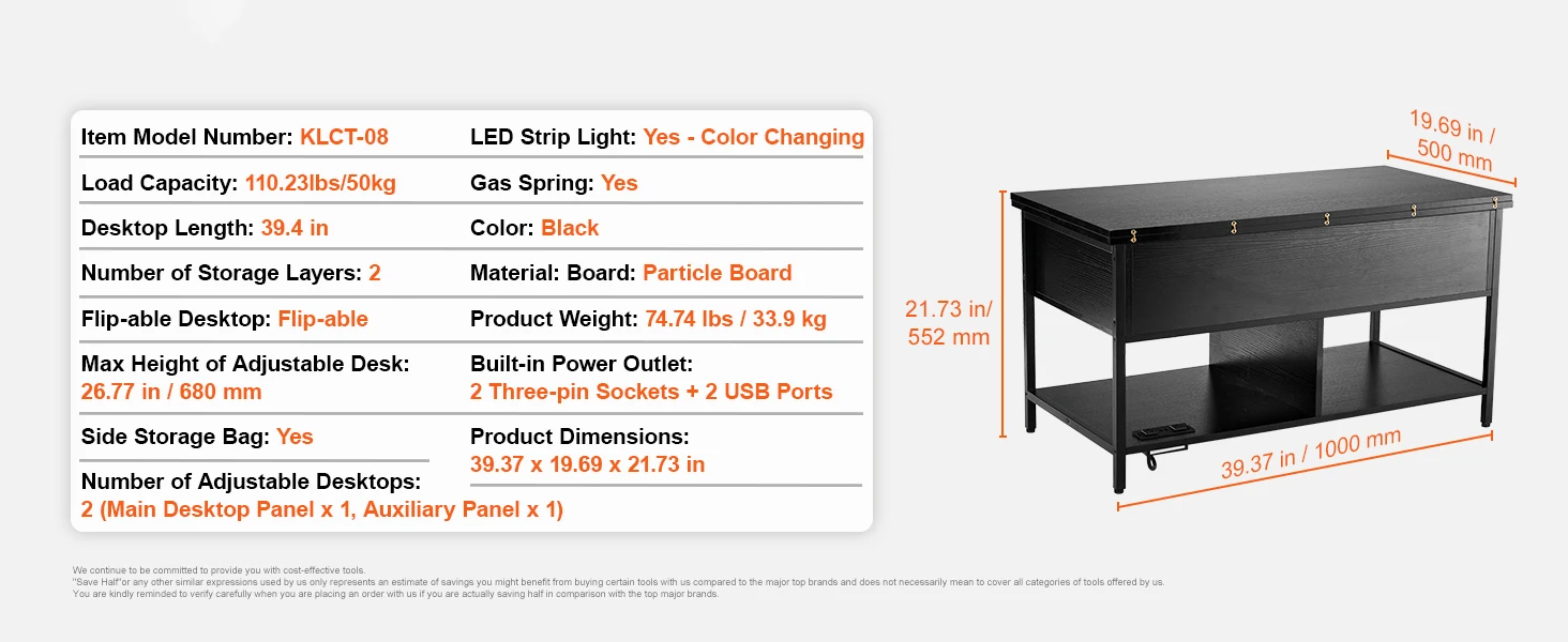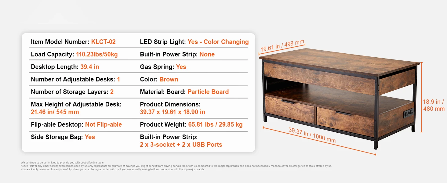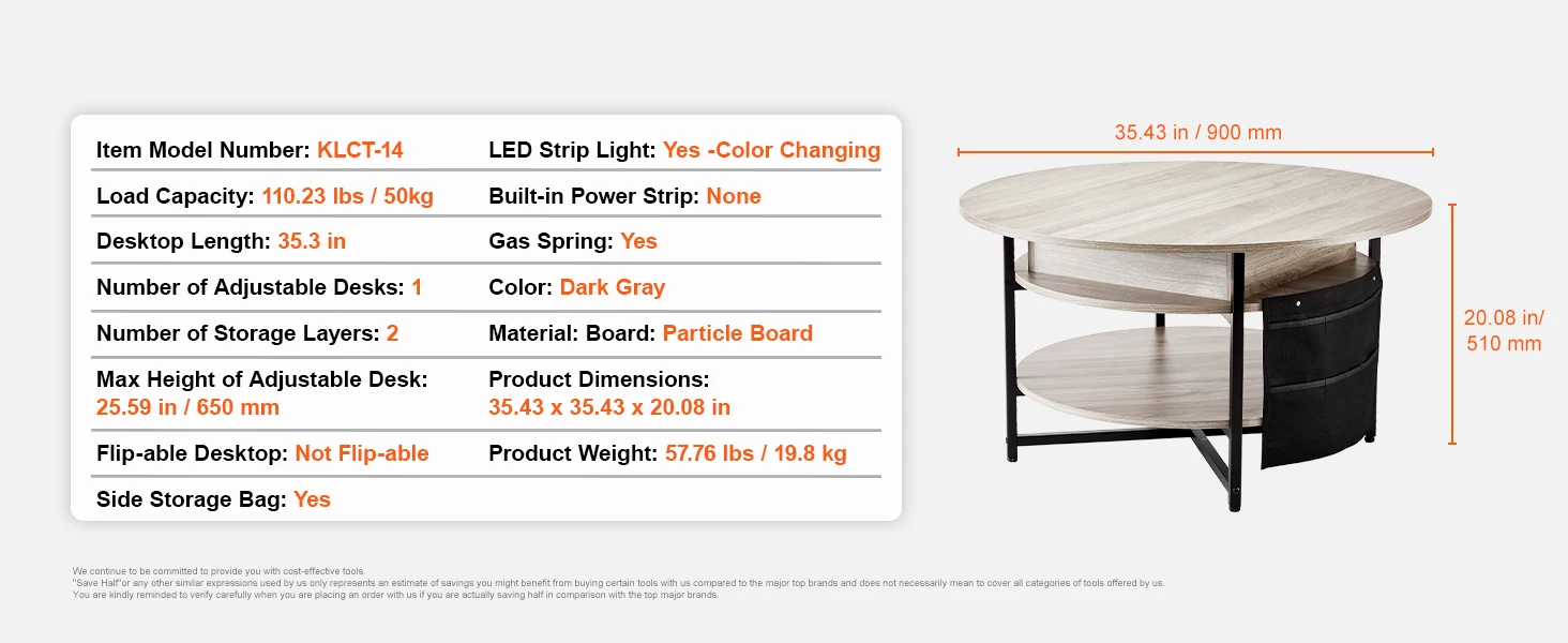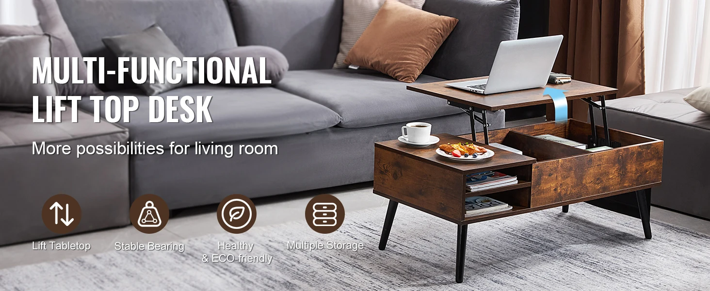 • Adjustable Height: SucceBuy's coffee table has an extendable top with two modes. Great for work, dining, storage.