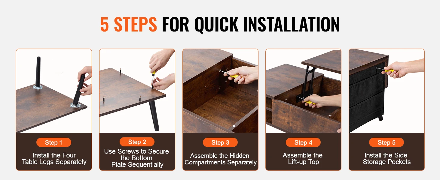 • Effortless Assembly: Assembling this lift-top coffee table is simple with the included tools, parts, and detailed instructions. Whether you’re a DIY novice or experienced, you’ll find the setup process quick and hassle-free.