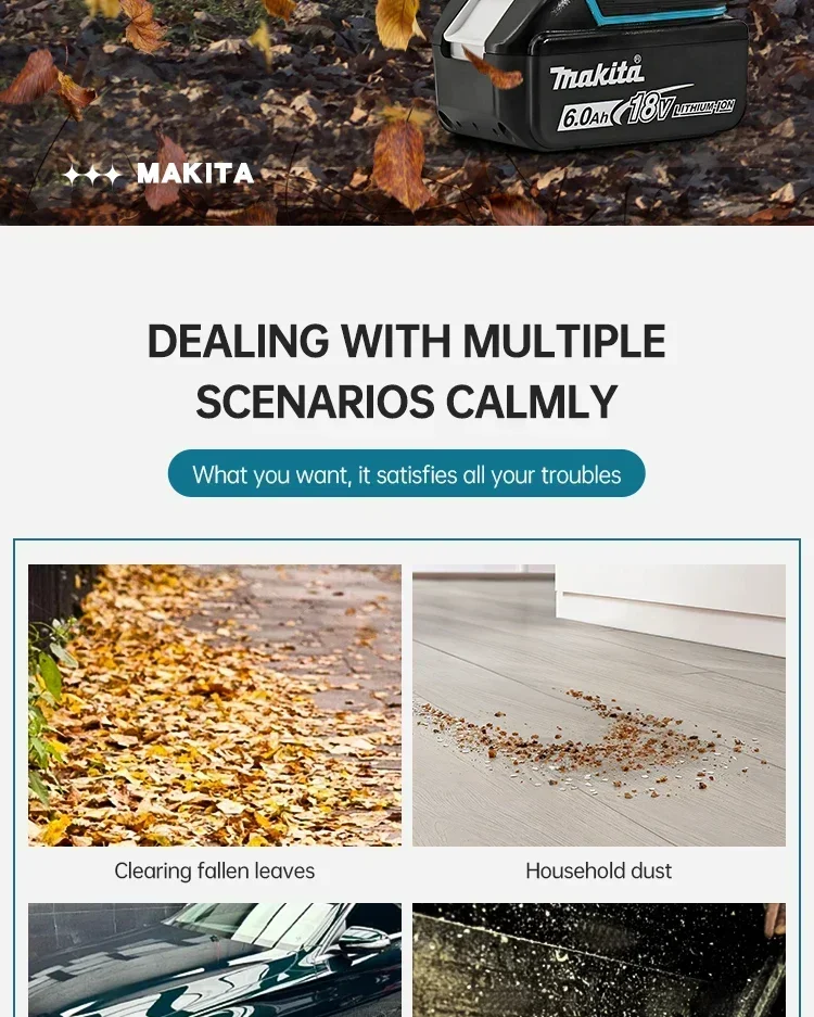 Powered by a rechargeable lithium battery, compatible for Makita battery .