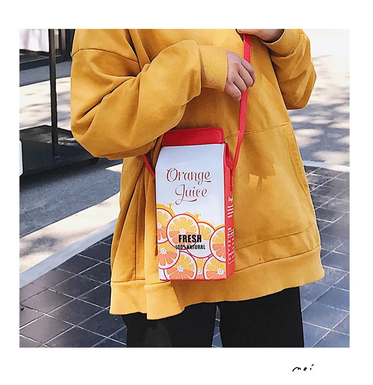 Fun Milk Orange Juice Box Design Young Girl's Shoulder Bag Novelty Crossbody Bag for Women Cartoon Purses and Handbags Kawaii