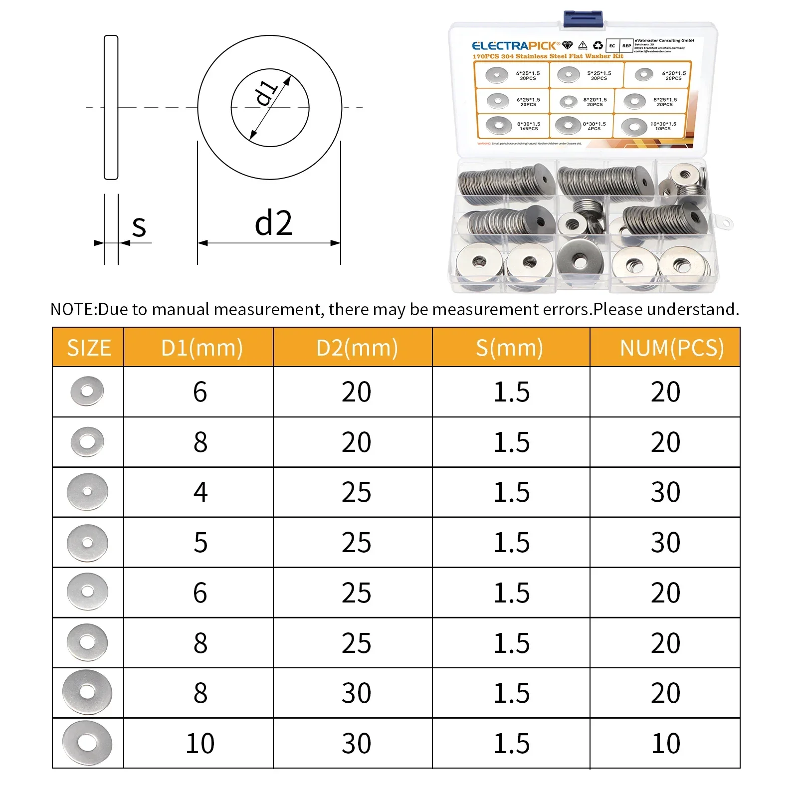 75/170230pcs 304 Stainless Steel Washers