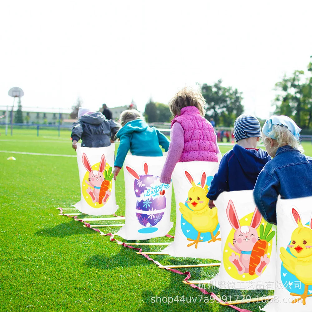 Happy Easter Party Jumping Bag Cute Cartoon Rabbit Chick Egg Pattern Potato Sack Race Bag Outside Field Games for Kid and Family
