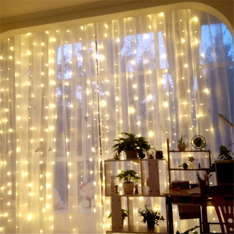 3M x 3M LED Strip Lighting 220V EU String Lights Outdoor House Christmas Wedding Party Xmas Decorative Curtain Bright AC