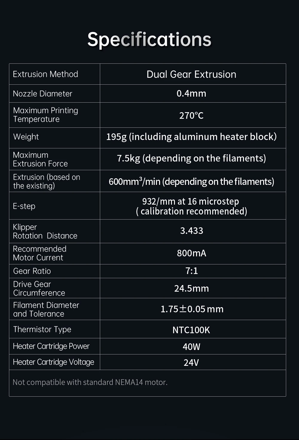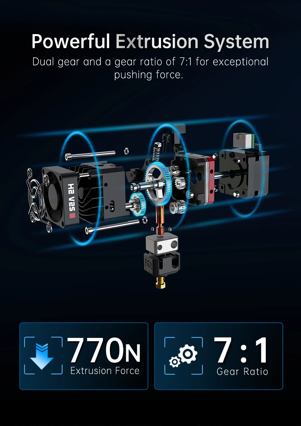 Maximum Extrusion Force: 7.5kg (depending on filaments)