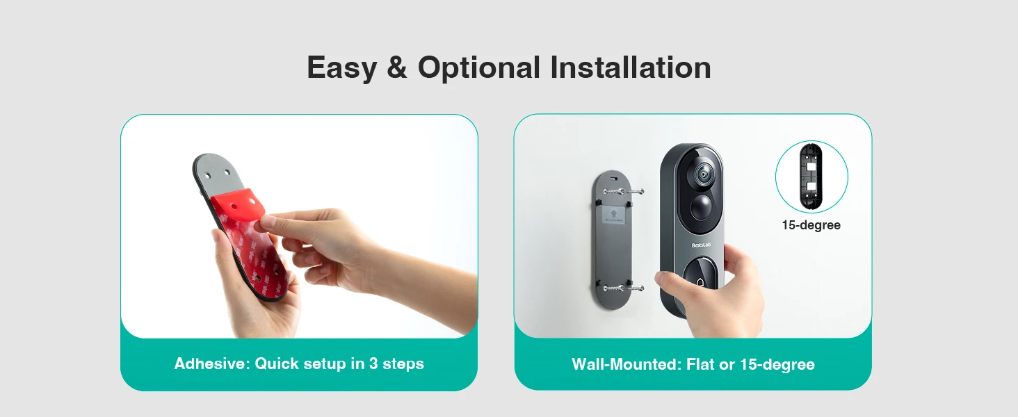 Botslab Doorbell Camera Wifi 2.5K5MP Smart HDR Video Doorbell Wireless Intercom 180°Wide-Angle Night Vision Battery AC/DC AI&PIR