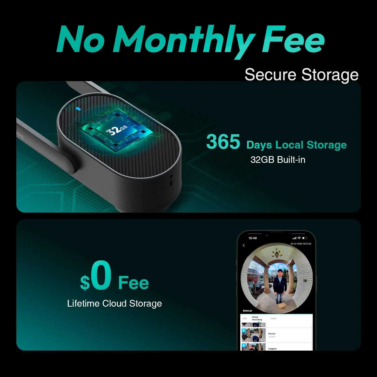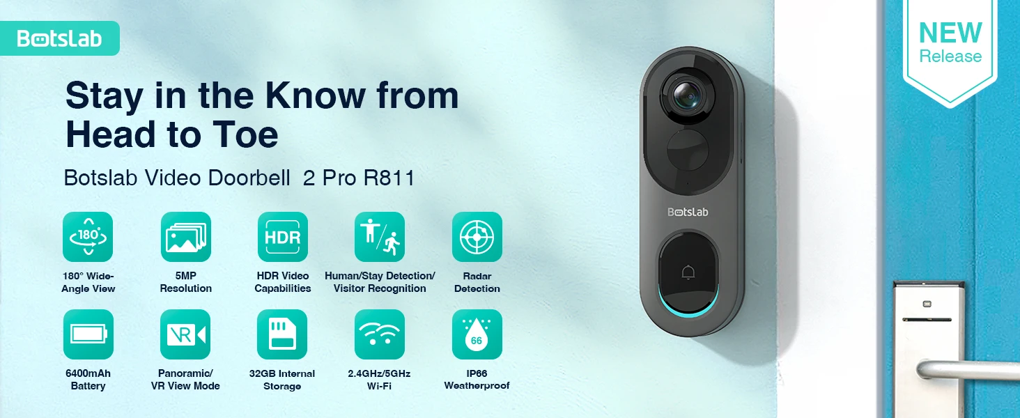 Experience worry-free storage, botslab doorbell camera provides the $0 fees lifetime cloud storage option and 32GB built-in local storage. 5MP doorbell camera will record the detection video for you.