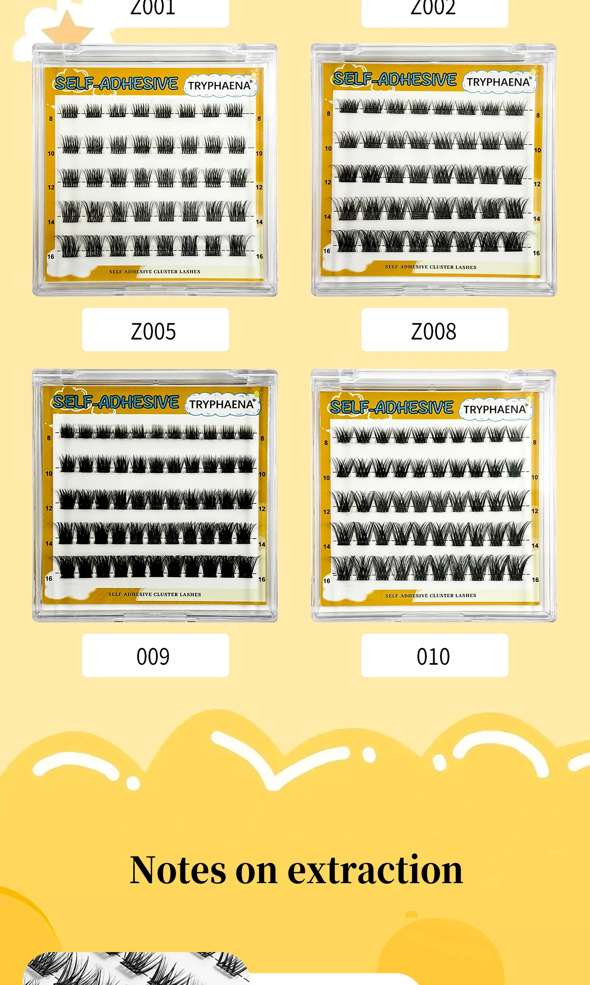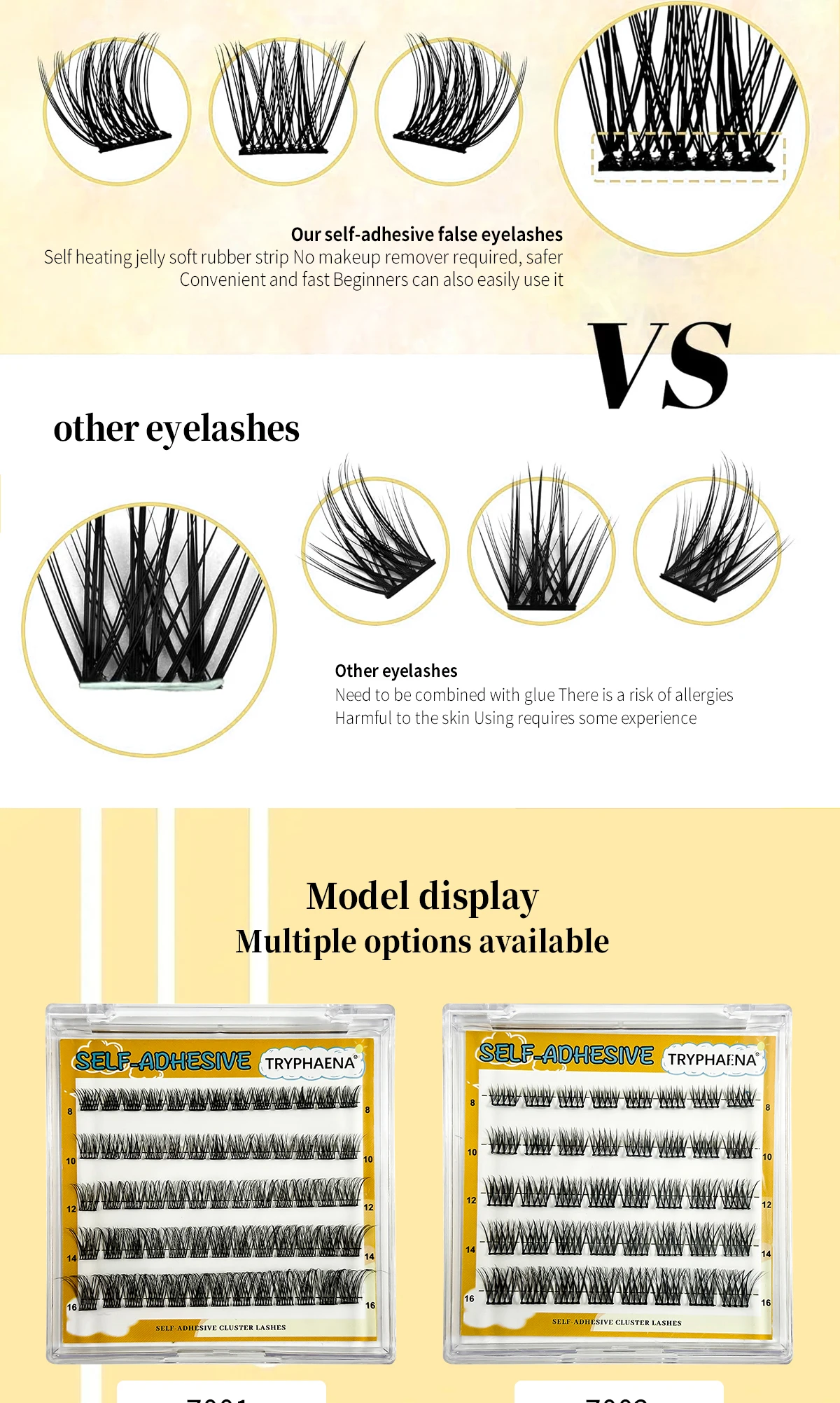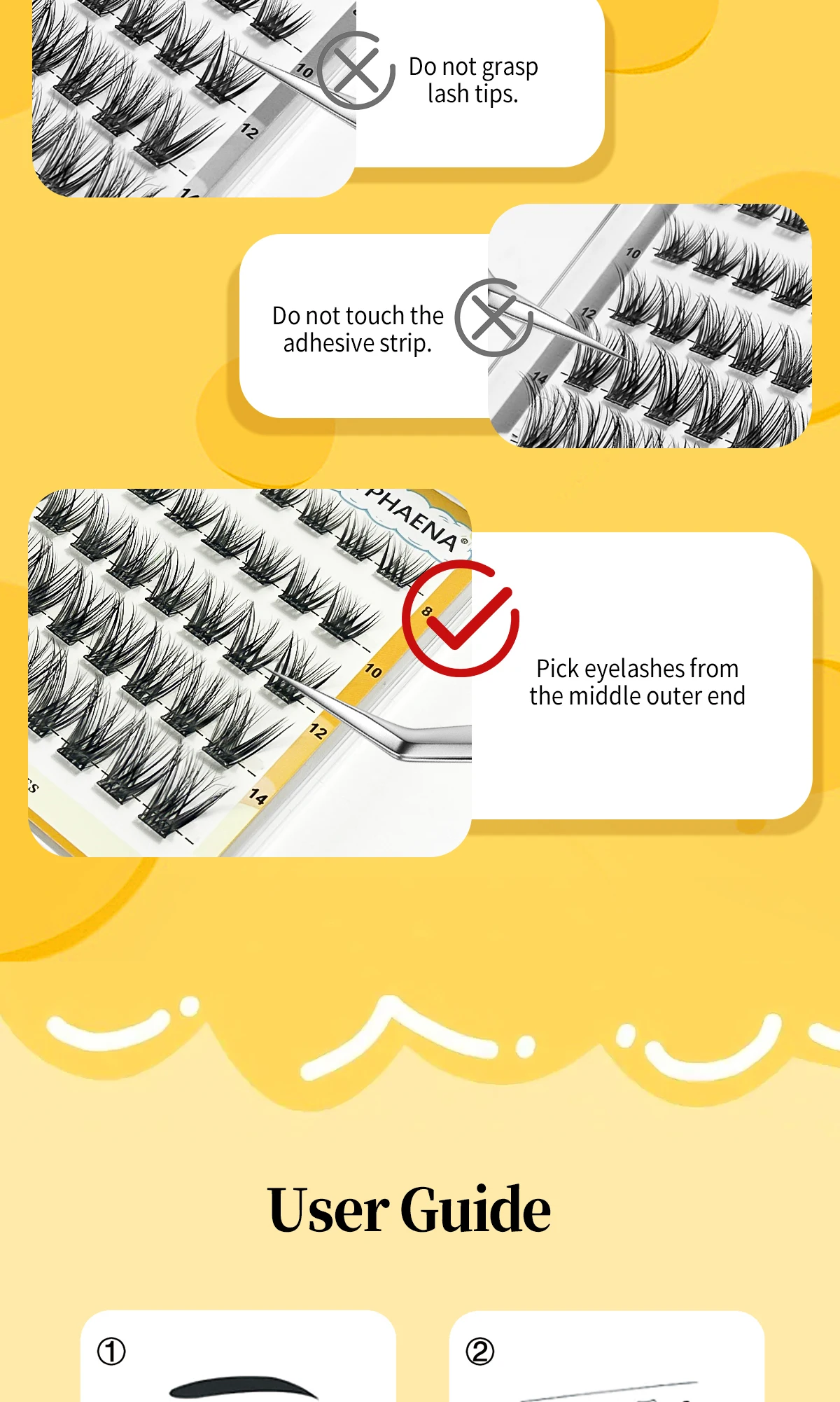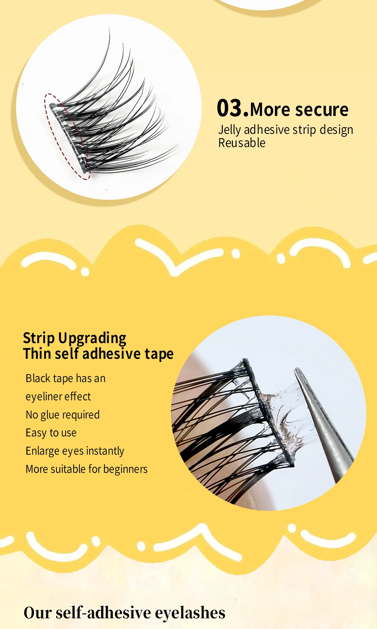 【Easy Removal, No Residue】After using, the self adhesive lash clusters can be taken off just by finger—no lash glue remover required. The easy removal method is gentle, harmless to your natural lashes as well. After removing, there won't be any residue left.
