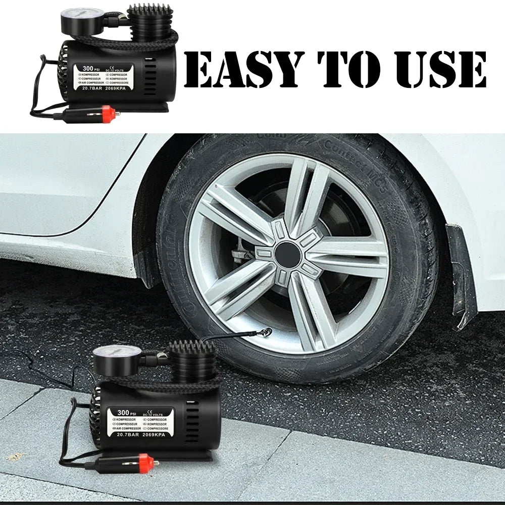 12V 300PSI Mini Air Compressor with Gauge Auto Inflatable Pump High Precision Heavy Duty Tire Inflator Electric Compact Air Pump