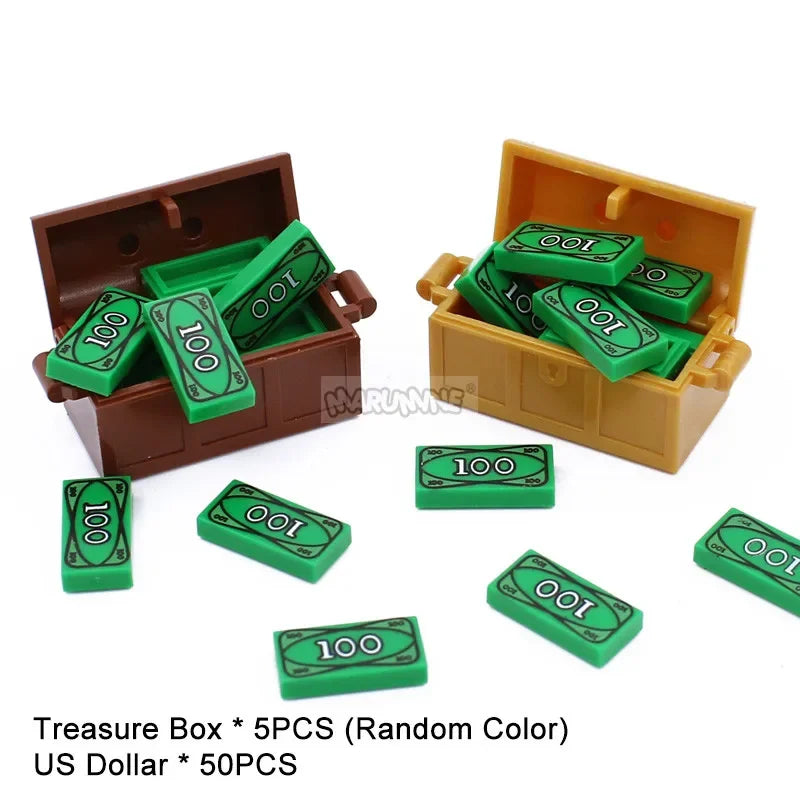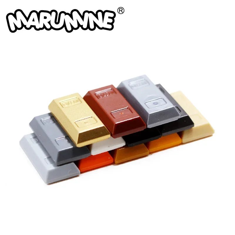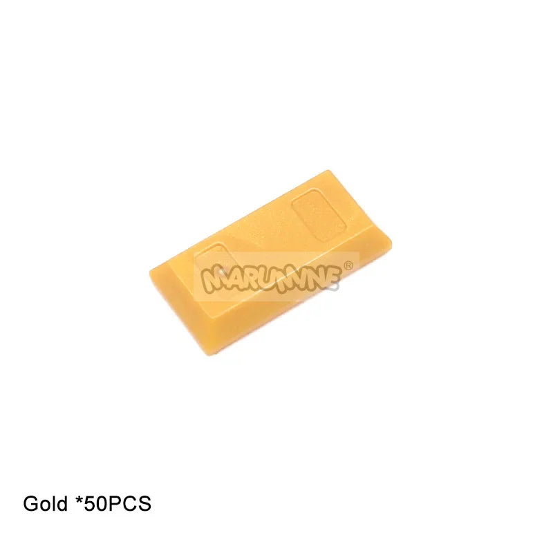 Marumine 50PCS Tile Special 1x2 Ingot Bar Gold Money Pirate MOC Brick Part 99563 Assembles Particles Building Blocks Accessories