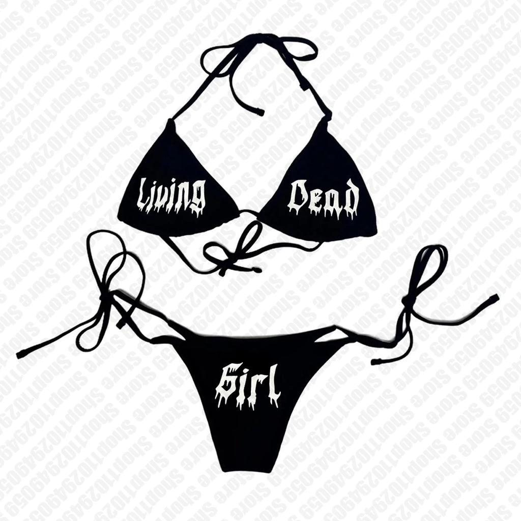 Y2k Bikini Set 2000s Swimsuit letter print Push-up Padded Bra Thong Two Pieces Swimwear Beachwear Bathing Suit Female Sexy Women