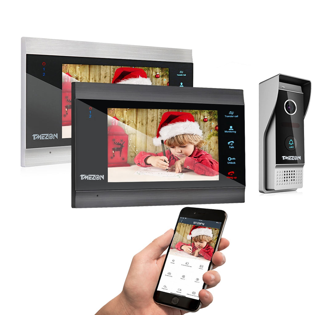 TMEZON 1080P Video Türsprechanlage Haussprechanlage Wireless WiFi Smart IP Video Türklingel 7 Zoll mit kabelgebundener Türklingel TUYA APP